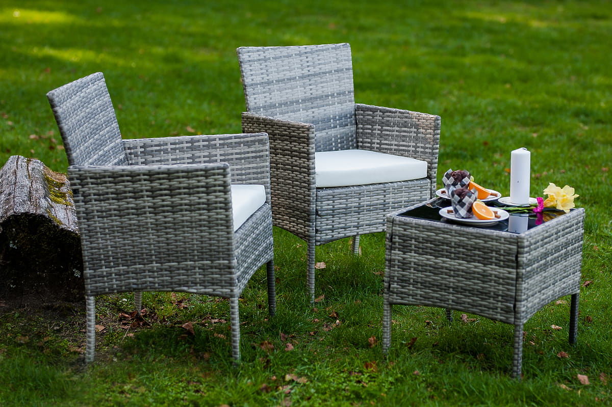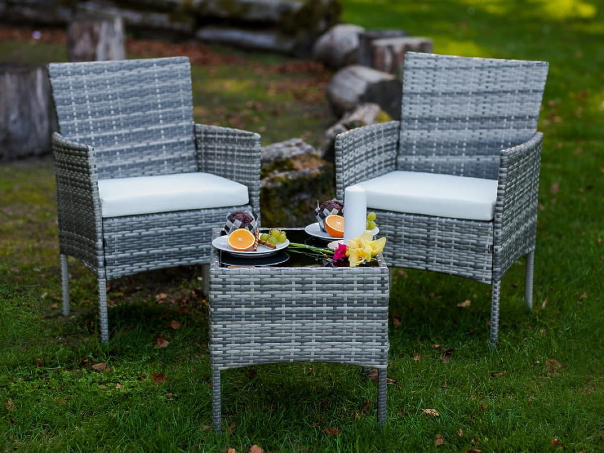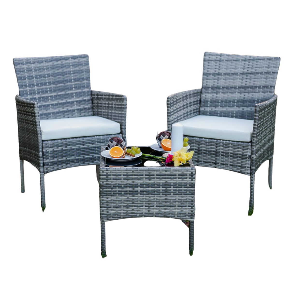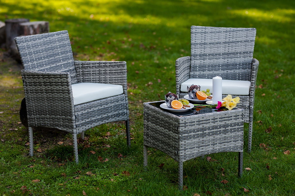 Set de mobilier de balcon (2 x fotoliu + masă) SANO din ratan tehnologic gri