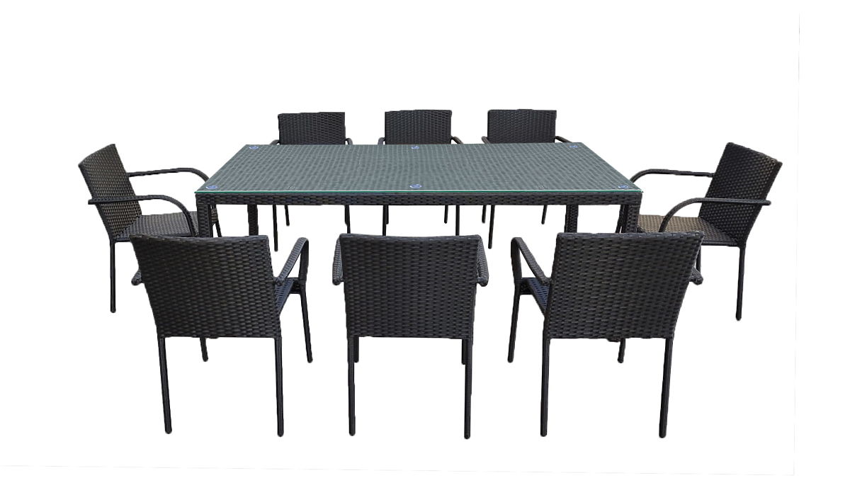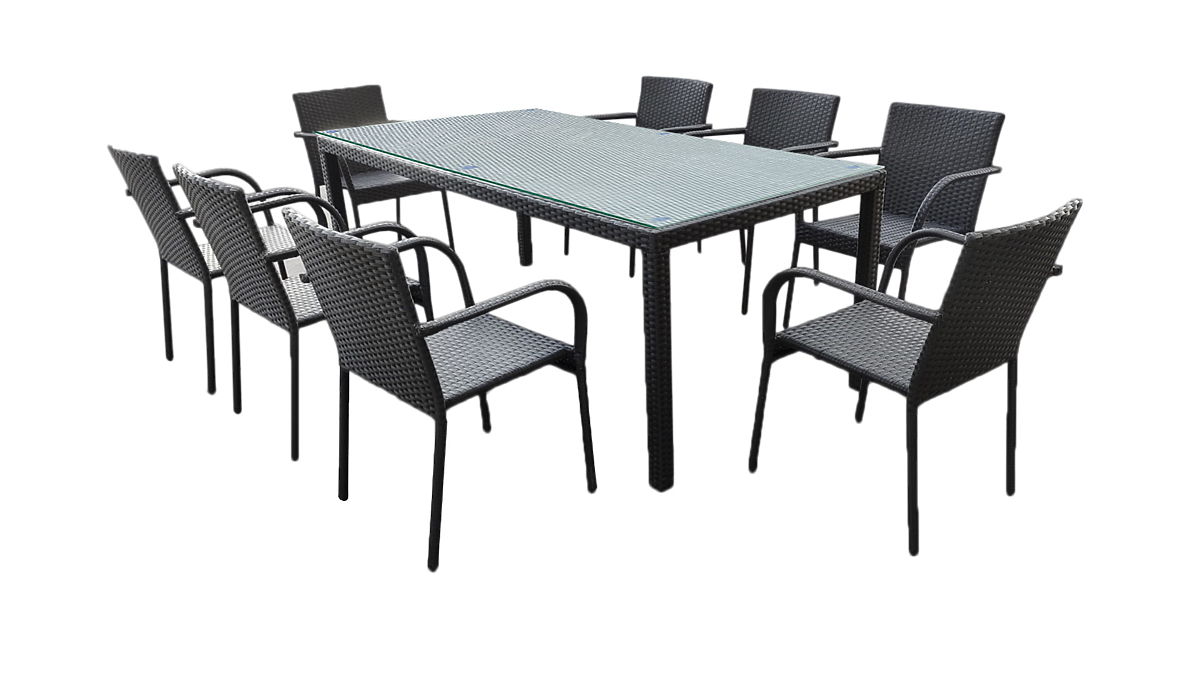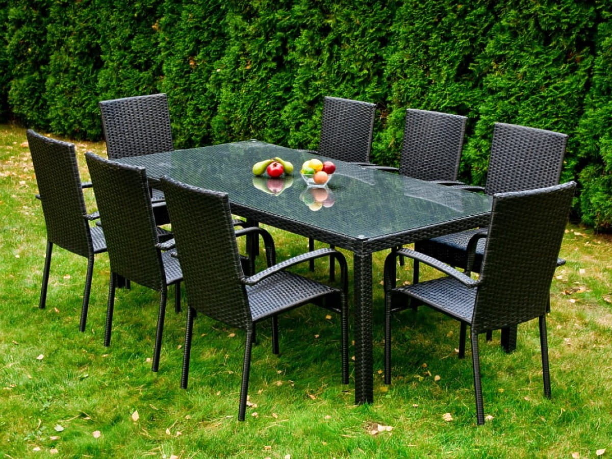 Set mare de masă din tehnoratan (masă 200x100cm + 8 scaune) SOTTILE negru
