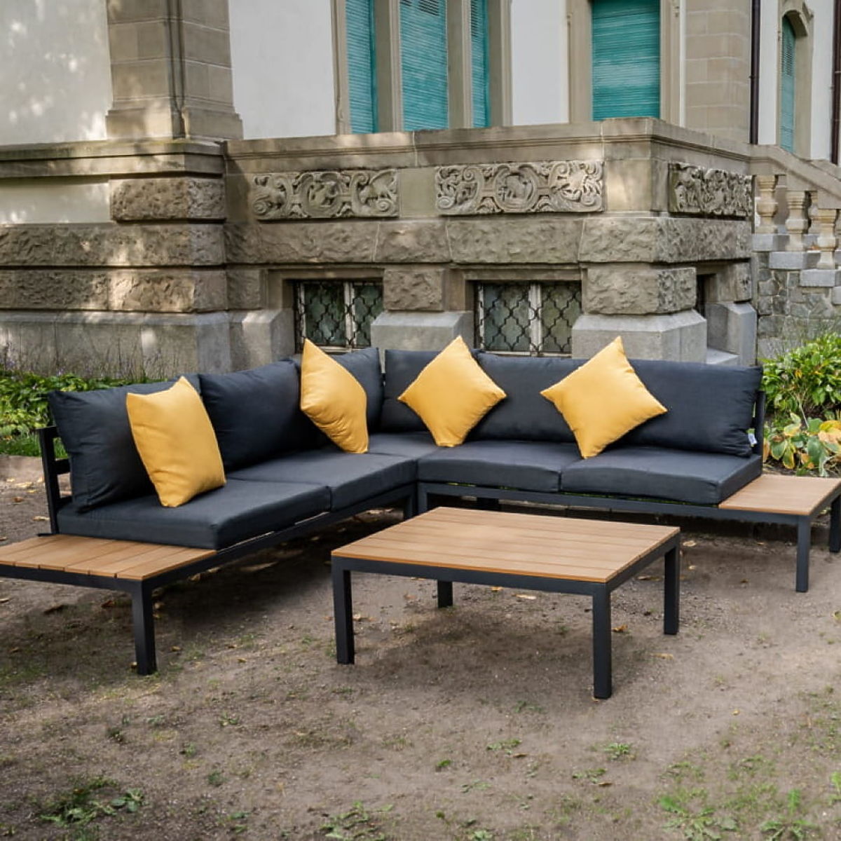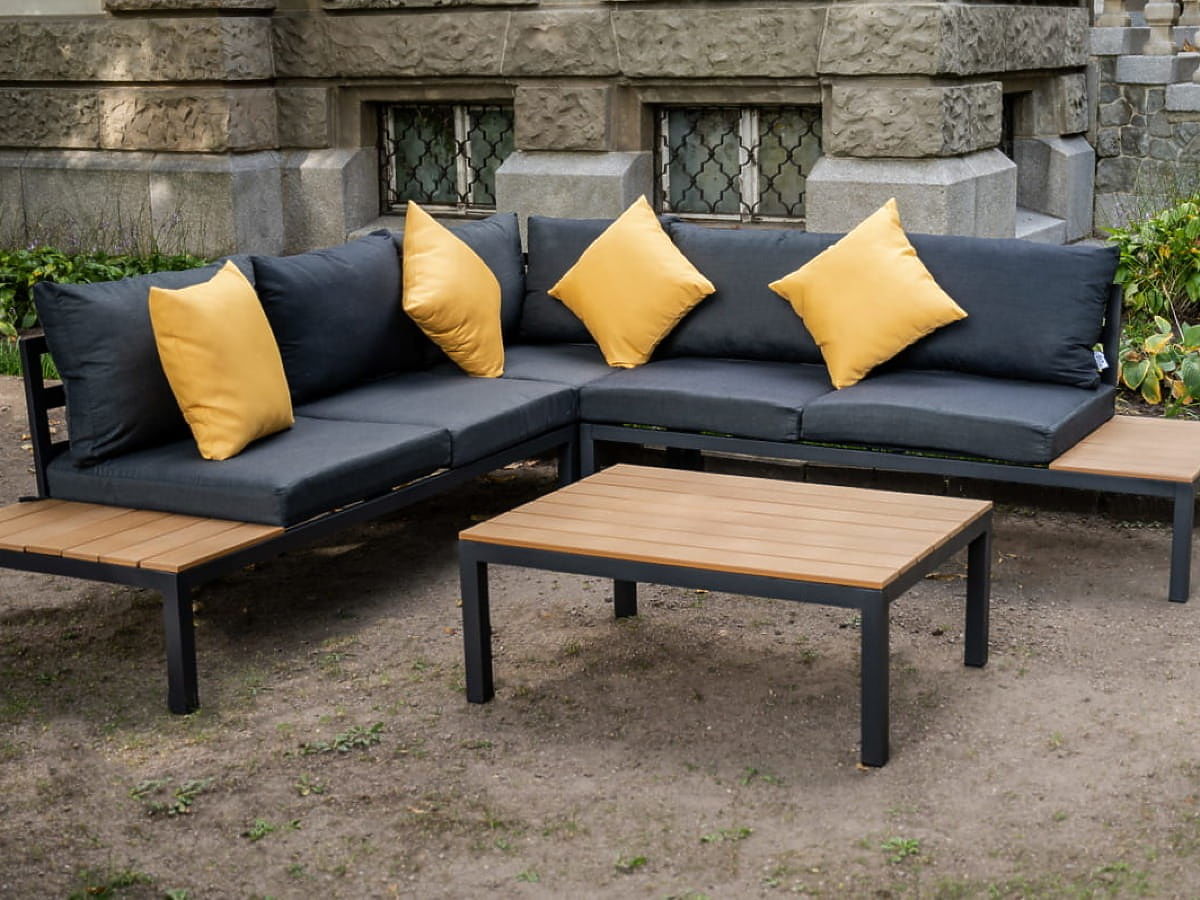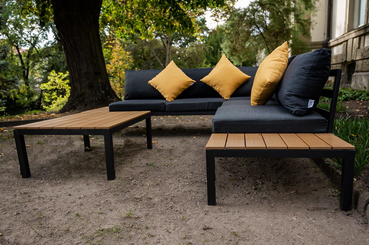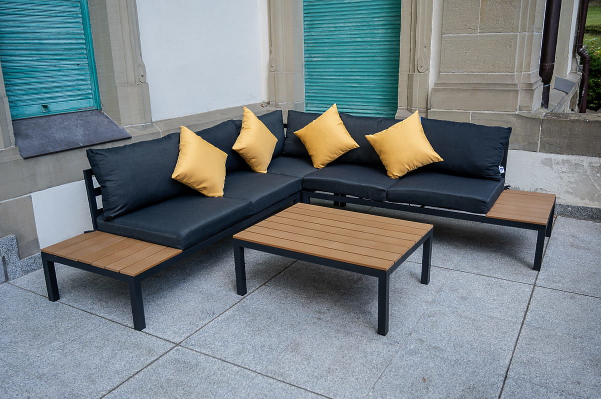 Set colțar mare din aluminiu cu măsuță MASSIMO negru