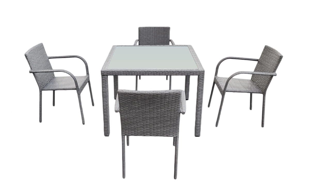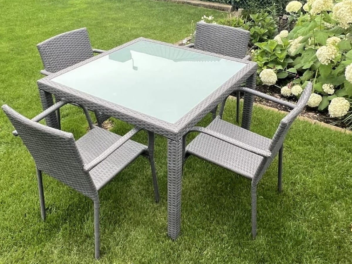 Set de masă din tehnoratan (masă 100x100 + 4 scaune) AVVICENTE gri