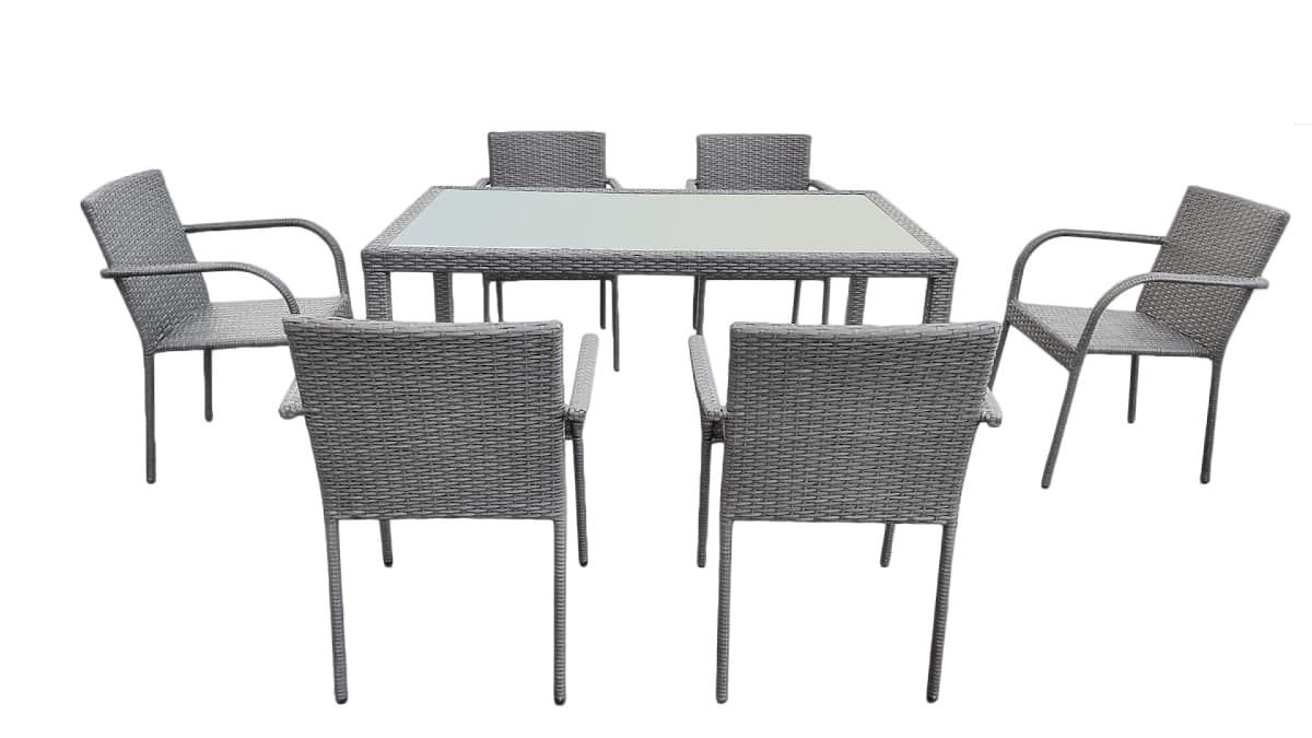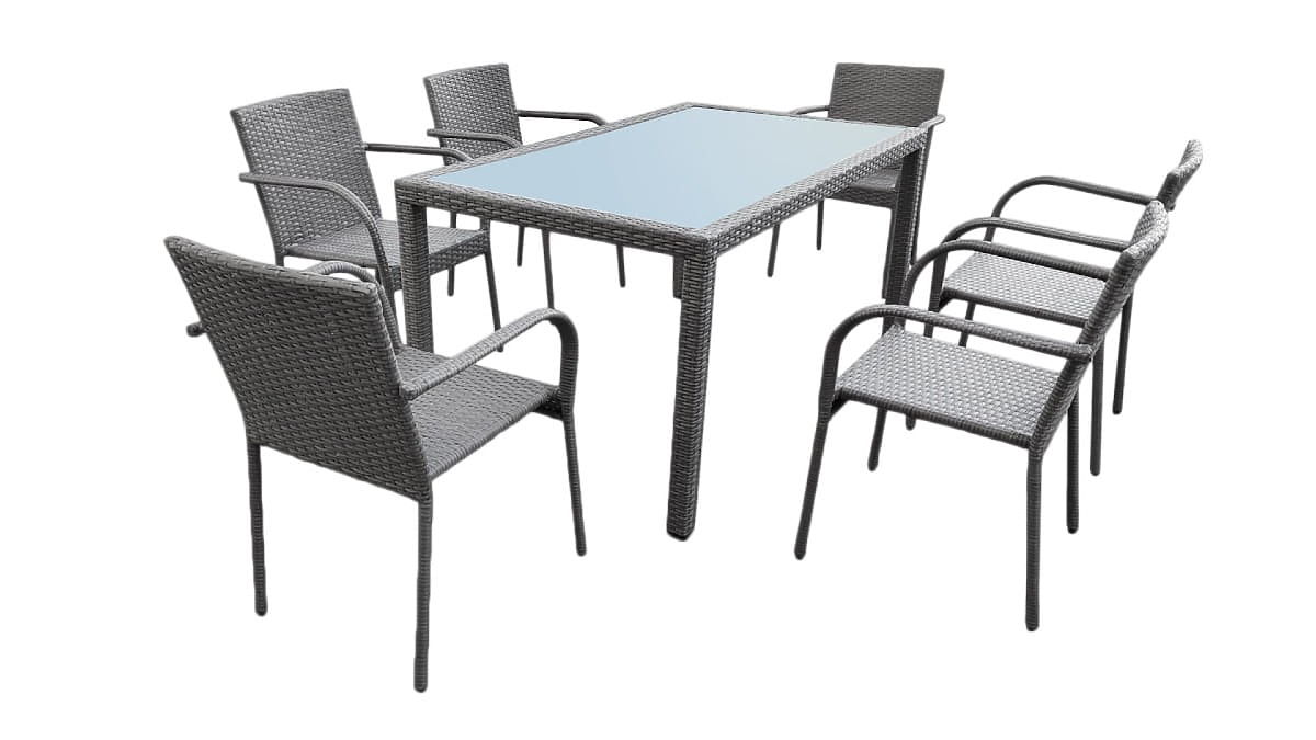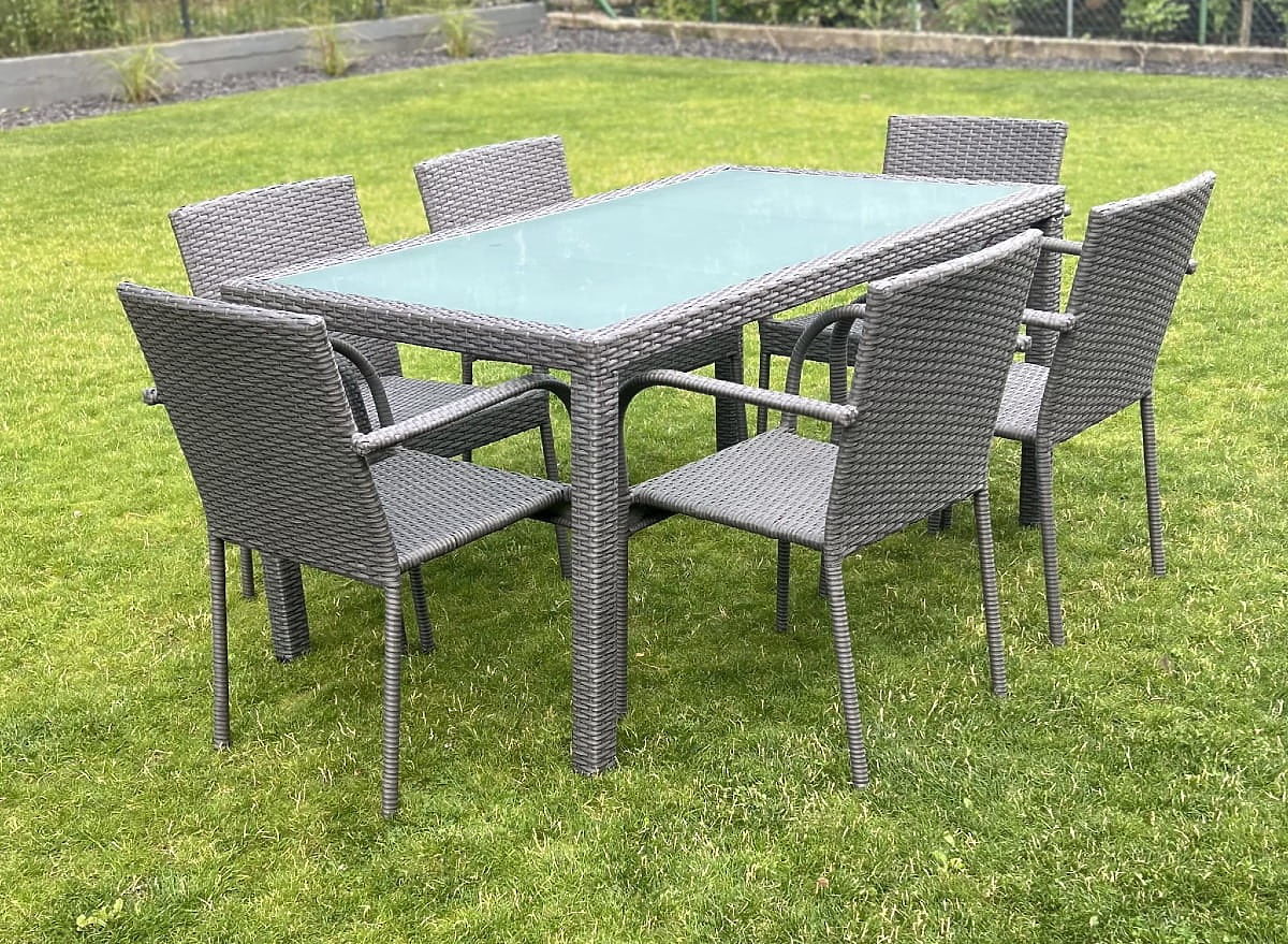 Set de mobilier de sufragerie din tehnoratan (masă 150x90cm + 6 scaune) AVVICENTE gri