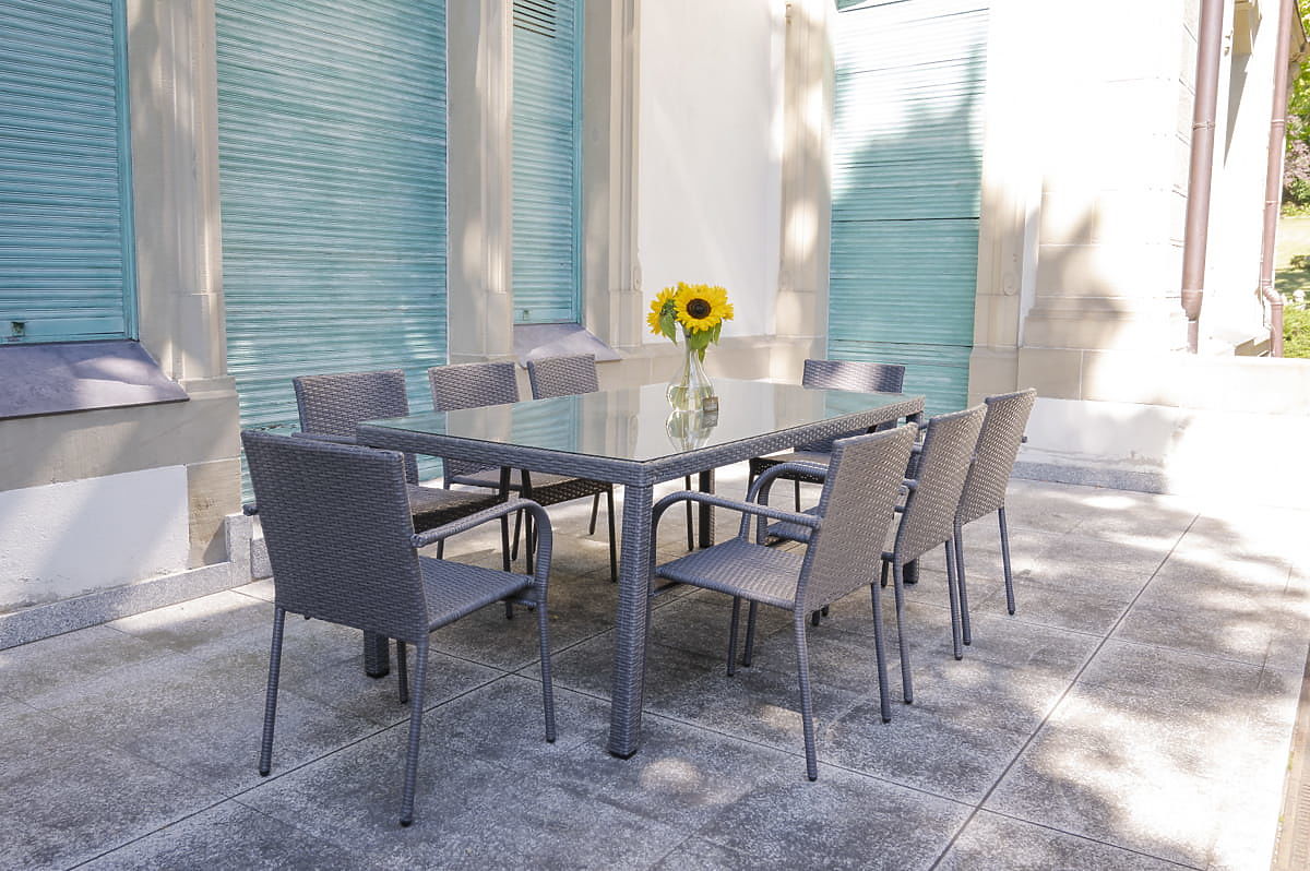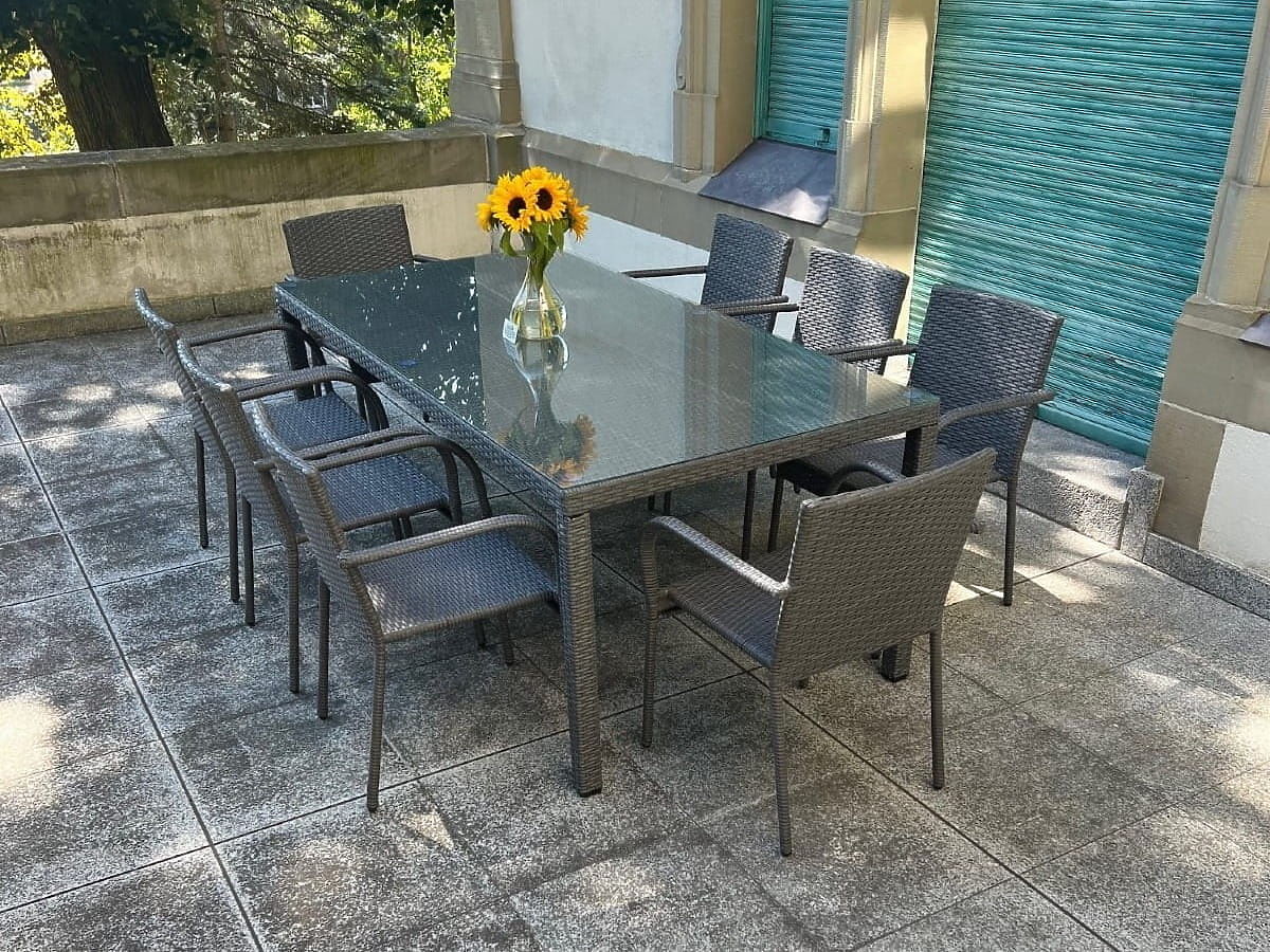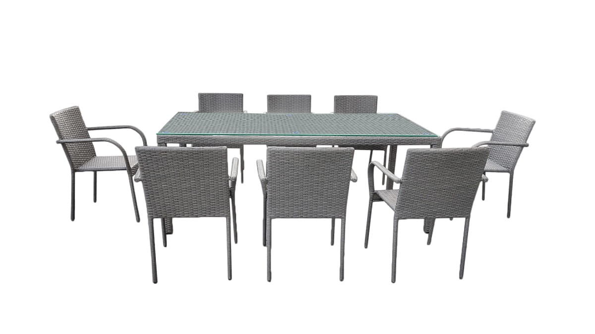 Set mare de masă din tehnoratan (8 scaune + masă mare) SOTTILE gri