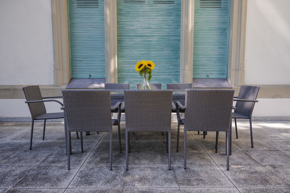 Setul de masă SOTTILE a fost conceput pentru iubitorii întâlnirilor elegante în cercul celor dragi și reprezintă o combinație ideală de stil și confort. Mobilierul său extrem de elegant va fi nu doar o decorațiune excelentă pentru orice grădină sau terasă, ci va oferi și condiții excepționale pentru petrecerea timpului în aer liber. Mobilierul de grădină din tehnoratan a fost realizat cu o precizie excelentă, subliniind caracterul său luxos, iar utilizarea tehnoratanului de înaltă calitate garantează nu doar rezistență la ploaie și radiații UV dăunătoare, ci și durabilitate și întreținere ușoară. Setul de terasă SOTTILE, cu materialul său practic și designul gândit, este nu doar o soluție practică, ci și estetică, care va încânta pe oricine apreciază combinația de modernitate cu eleganța tradițională în amenajarea spațiilor exterioare. Culoarea setului SOTTILE: gri, structură periată Împletitură: tehnoratan 7-8mm x 1,2mm Construcția mobilierului: masă – aluminiu, scaune – oțel Setul este compus din 9 elemente: 1 x masă: lungime: 200 cm lățime: 100 cm înălțime: 74 cm blat de sticlă transparentă realizat din sticlă securizată de 5 mm, așezat pe împletitura de tehnoratan 8 x scaune: lățime: 56 cm adâncime: 50 cm înălțime: 84 cm înălțimea de la podea la șezut: 44 cm înălțimea spătarului de la șezut: 43 cm lățimea șezutului: 40 cm adâncimea șezutului: 43 cm Setul este livrat pe 1 paletă cu dimensiunile 120x80x210 cm, greutate 80 kg Scaunele pot fi utilizate imediat după ce sunt scoase din cutii. Scaunele sunt stivuibile (posibilitatea de a le introduce unul în altul), ceea ce facilitează depozitarea și mobilierul nu ocupă mult spațiu. Masa este destinată unei asamblări simple, de sine stătătoare, conform instrucțiunilor incluse. Blatul de sticlă al mesei este fixat pe ventuze de silicon, care îl protejează de alunecare. Posibilitatea de a achiziționa perne pentru scaune aici. Tehnoratanul este rezistent la influențele meteorologice dăunătoare, însă pentru a păstra aspectul neschimbat al mobilierului pentru mai mult timp, recomandăm achiziționarea unei huse de protecție. Husa de culoare gri închis este dintr-o singură bucată și are un șnur de strângere în partea de jos. Toate husele sunt realizate la comandă și timpul de execuție este de aproximativ 14 zile lucrătoare. Imaginați-vă un mobilier de grădină care depășește așteptările dumneavoastră în toate privințele – de la durabilitate la design. Acesta este BELLO GIARDINO, unde fiecare detaliu contează și luxul se întâlnește cu funcționalitatea: Calitate nepieritoare: Ratanul nostru sintetic garantează că mobilierul va rezista ani de zile, fără a-și pierde din frumusețe sau durabilitate. Rezistență la intemperii: Mobilierul nostru face față celor mai dure condiții meteorologice, de la soarele arzător la iernile geroase, rămânând mereu frumos. Confort luxos: Pernele groase și moi invită la relaxare, oferind un confort greu de găsit în altă parte. Ușurință și rezistență: Construcția din aluminiu combină cele mai bune din ambele lumi – este ușoară, dar extrem de stabilă. Design care încântă: Fiecare element al mobilierului nostru a fost conceput cu atenție la estetică și funcționalitate, pentru a se potrivi în orice mediu. Indiferent dacă sunteți un iubitor al minimalismului sau apreciați aranjamentele bogate și elegante, mobilierul nostru vă va îndeplini așteptările, depășind limitele funcționalității și esteticii obișnuite. Asigurăm că și cei mai exigenți clienți nu vor rezista confortului și stilului oferit de BELLO GIARDINO. Transformați grădina, terasa sau balconul dumneavoastră într-o oază de relaxare și eleganță pe care ați dorit-o întotdeauna. Nu așteptați, descoperiți BELLO GIARDINO astăzi și transformați-vă spațiile exterioare în locuri la care ați visat întotdeauna. Fotografii ale mobilierului de la clienții noștri: