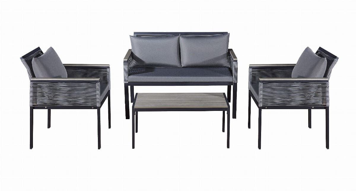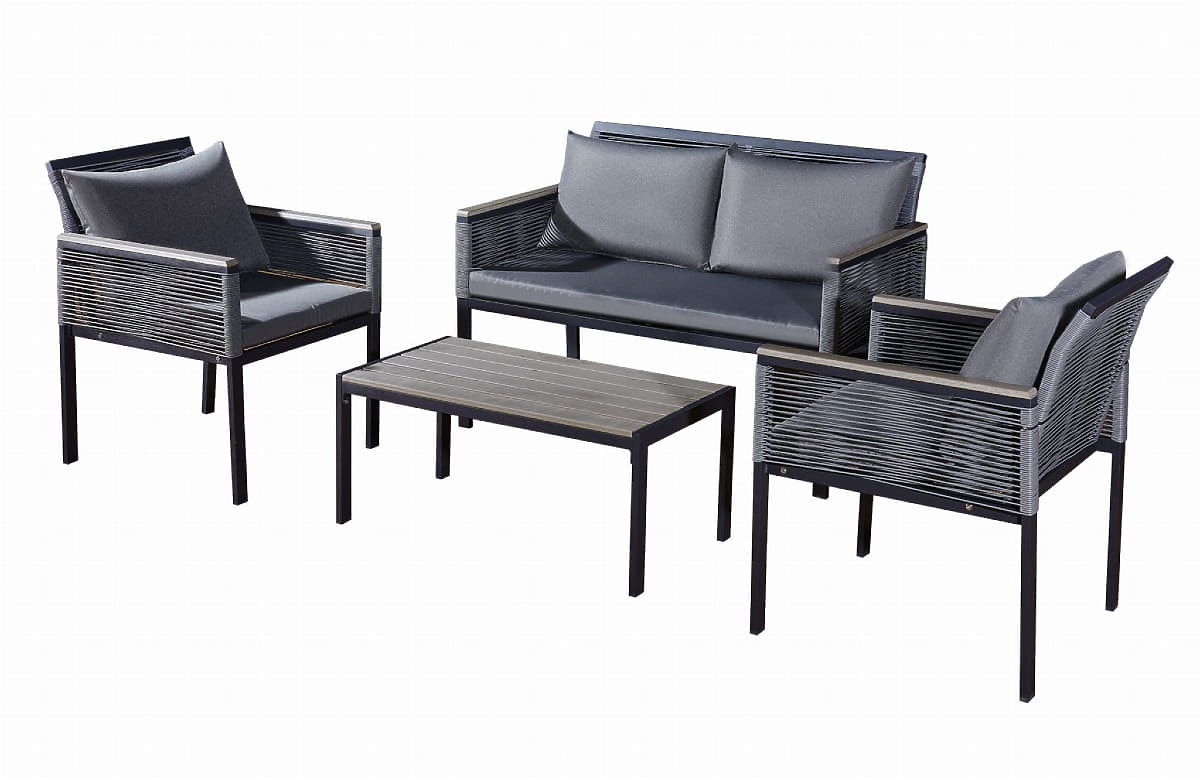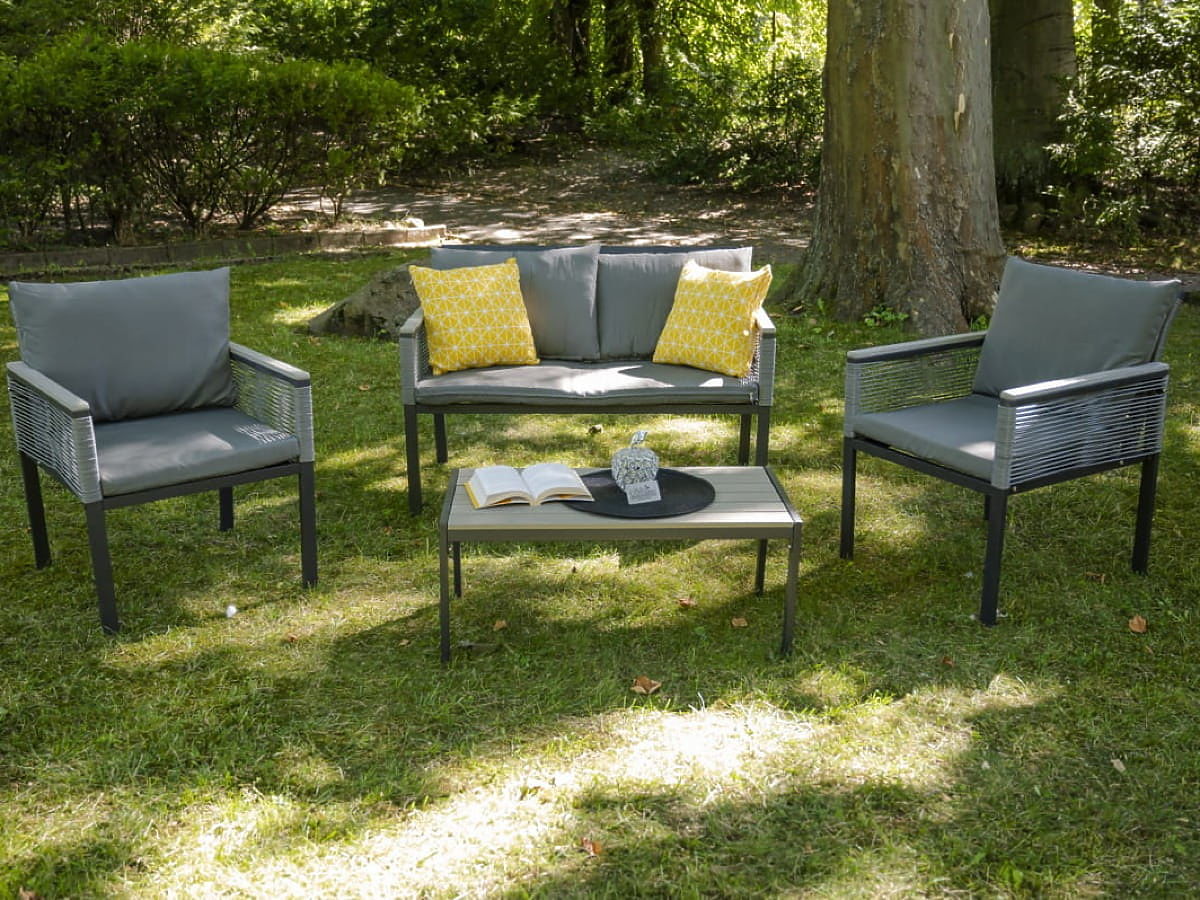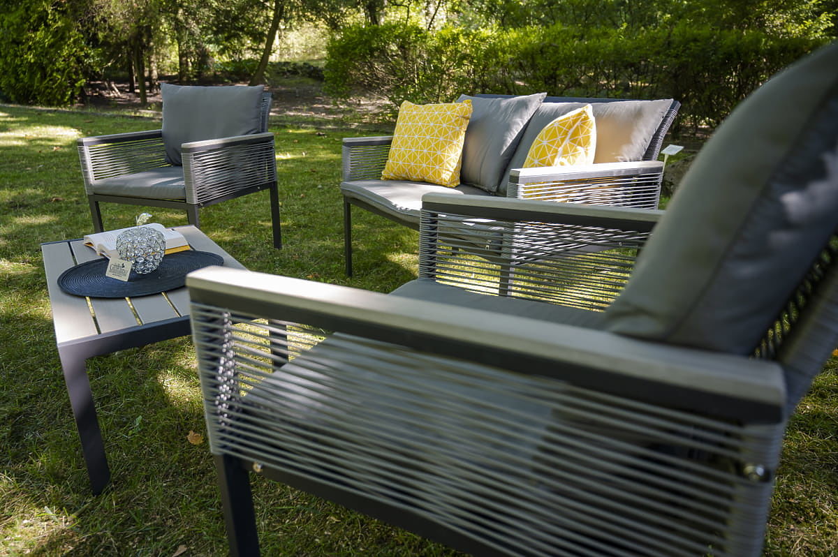 Set de mobilier de grădină din aluminiu (2 x fotoliu, canapea + masă) CORTO rotund gri tehnoratan