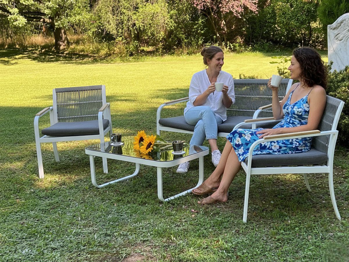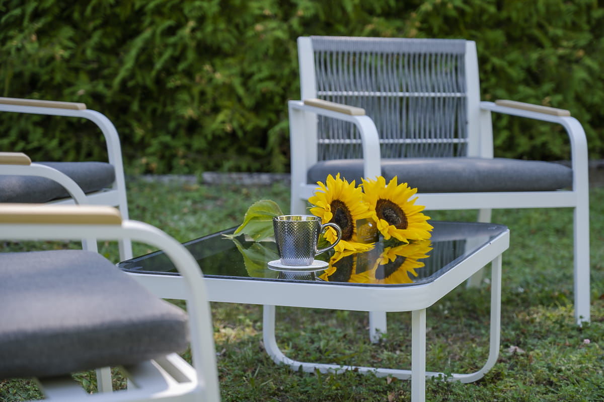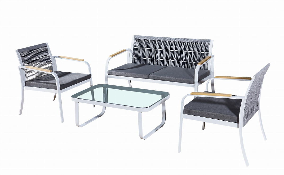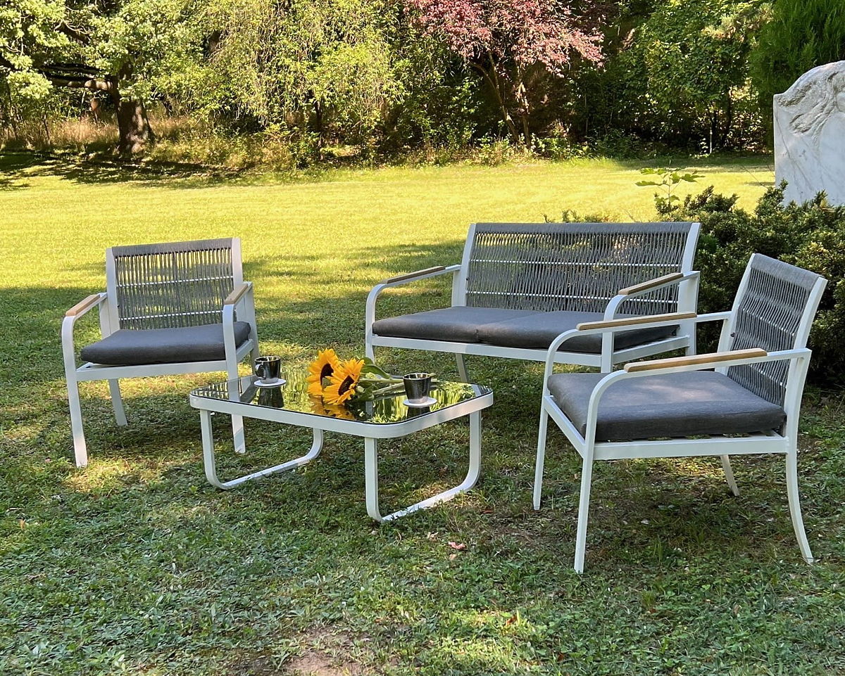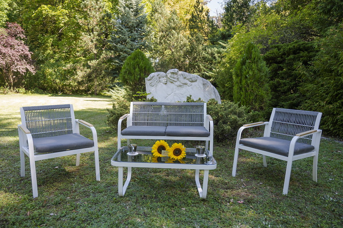 Set mobilier de grădină din aluminiu (2 x fotoliu, canapea + masă) RARO alb, gri