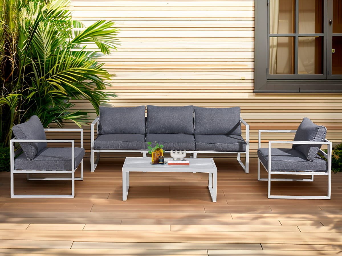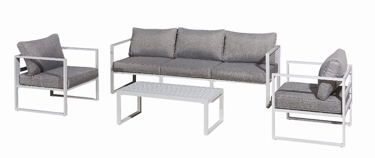 Set mobilier de grădină (canapea mare cu 3 locuri, 2 x fotoliu + masă) MOSTRARE aluminiu alb, perne