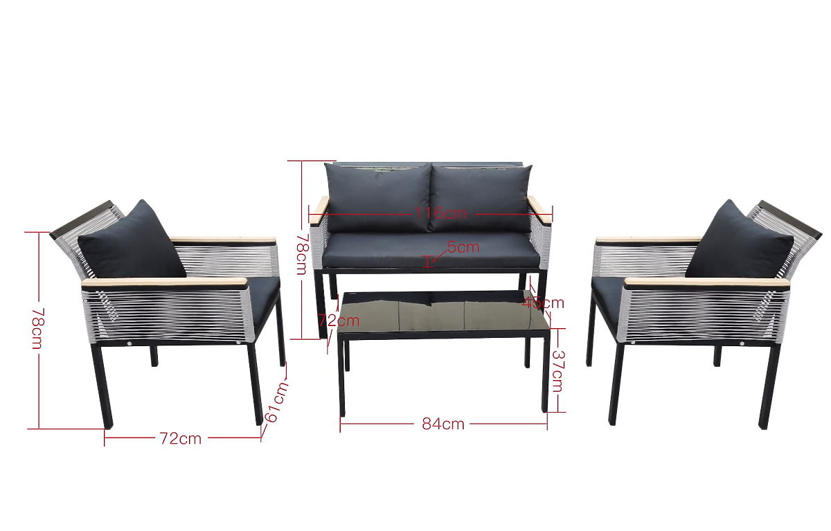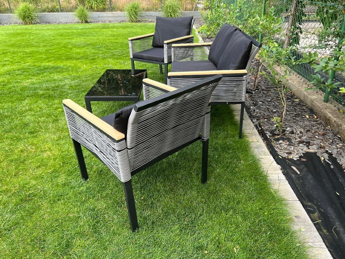 Acest set de mobilier este esența confortului și designului, o invitație de a crea o oază unică de liniște în grădina, terasa sau balconul dumneavoastră. Este alegerea perfectă pentru cei care doresc să transforme spațiul exterior într-o capodoperă de funcționalitate și estetică. Acest set extrem de original, caracterizat printr-un format compact, se potrivește perfect chiar și în cele mai confortabile colțuri. Fabricat din aluminiu, rezistent la capriciile vremii, ceea ce garantează durabilitatea sa fenomenală și strălucirea impecabilă de-a lungul anilor. Dacă visați la o combinație perfectă de eleganță, fiabilitate și relaxare profundă în aer liber, acest set este alegerea ideală. Va deveni o icoană a stilului în aranjamentul dumneavoastră exterior, iluminându-l cu un caracter unic și invitând la momente nesfârșite de relaxare. Culoarea setului CORTO: negru, împletitură uniformă: tehnoratan rotund, structură de mobilier: aluminiu (necesită asamblare simplă), cotiere terminate cu polywood. Setul este compus din 4 piese (după asamblare): 2 x fotoliu: lățime: 61 cm, adâncime: 72 cm, înălțime: 78 cm, 1 x canapea: lățime: 116 cm, adâncime: 72 cm, înălțime: 78 cm, 1 x masă (blat din polywood): lungime: 84 cm, lățime: 45 cm, înălțime: 37 cm. Perne negre incluse în set (3 bucăți pentru șezut, 4 bucăți pentru spătar). Toate au huse detașabile cu fermoar, fabricate din material de exterior (100% poliester), care pot fi spălate la temperaturi scăzute. Husele pernelor sunt confecționate din țesătură de înaltă calitate acoperită cu teflon, care le protejează de umiditate. Umplutura pernelor este realizată din spumă de tapițerie de înaltă calitate (duritate medie - T25), care previne deformările. Grosimea pernelor: 5 cm. Posibilitatea de a comanda perne personalizate pentru acest set: https://www.bg-meble.pl/pl/p/Usluga-Krawiecka-Poduszki-Na-Zamowienie-/742. Posibilitatea de a comanda huse personalizate pentru perne pentru acest set: https://www.bg-meble.pl/pl/p/Usluga-Krawiecka-Poszewki-Na-Zamowienie/743. Posibilitatea de a comanda doar setul complet. Set pentru asamblare proprie conform instrucțiunilor incluse. Setul include un set complet de șuruburi și chei. Tehnoratanul este rezistent la influențele dăunătoare ale vremii, dar pentru a păstra aspectul neschimbat al mobilierului pentru mai mult timp, recomandăm achiziționarea unei huse de protecție. Husa de culoare gri închis este dintr-o singură bucată și are un șnur de strângere în partea de jos, trecut prin ocheți metalici. Toate husele sunt cusute la comandă și timpul de realizare este de aproximativ 14 zile lucrătoare. Imaginați-vă un mobilier de grădină care depășește așteptările dumneavoastră în toate privințele - de la durabilitate la design. Aici este BELLO GIARDINO, unde fiecare detaliu contează și luxul se întâlnește cu funcționalitatea: Calitate durabilă: Ratanul nostru sintetic garantează că mobilierul va rezista ani de zile fără a-și pierde frumusețea sau durabilitatea. Rezistență la intemperii: Mobilierul nostru face față celor mai dificile condiții meteorologice, de la soarele arzător la iernile geroase, rămânând mereu frumos. Confort luxos: Pernele groase și moi invită la relaxare, oferind un confort greu de găsit în altă parte. Ușurință și rezistență: Structura din aluminiu combină cele mai bune din ambele lumi - este ușoară, dar extrem de stabilă. Design care încântă: Fiecare element al mobilierului nostru a fost proiectat cu atenție la estetică și funcționalitate, pentru a se potrivi în orice mediu. Indiferent dacă sunteți un iubitor al minimalismului sau apreciați aranjamentele bogate și elegante, mobilierul nostru vă va îndeplini așteptările, depășind limitele funcționalității și esteticii obișnuite. Asigurăm că chiar și cei mai exigenți clienți nu vor putea rezista confortului și stilului oferit de BELLO GIARDINO. Transformați grădina, terasa sau balconul într-o oază de relaxare și eleganță pe care ați dorit-o întotdeauna. Nu așteptați, descoperiți BELLO GIARDINO astăzi și transformați spațiile exterioare în locuri la care ați visat mereu.