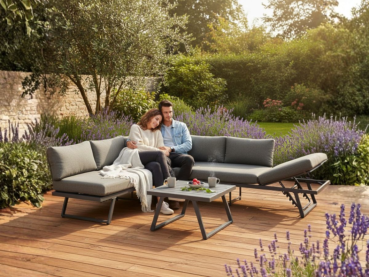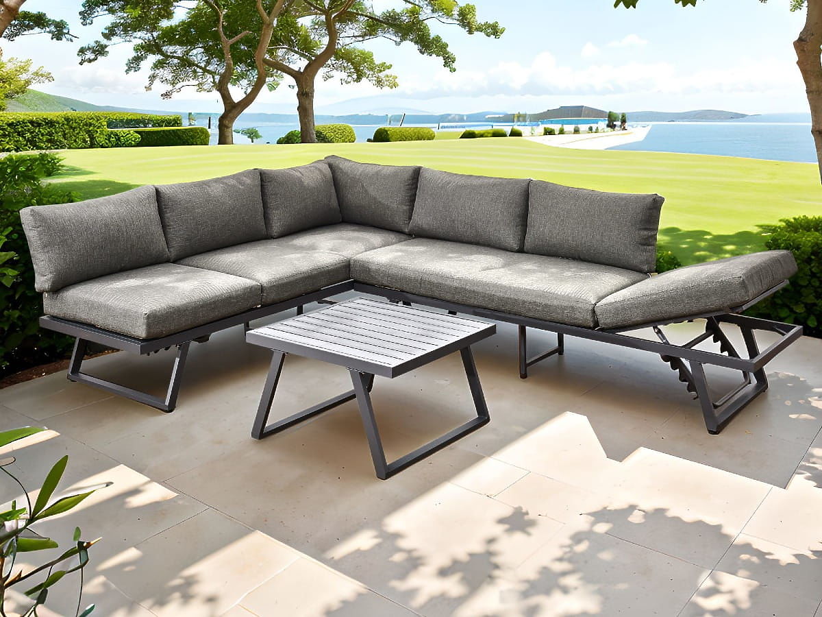 Canapea de colț de grădină din aluminiu cu masă RADIOSO cu spătar reglabil