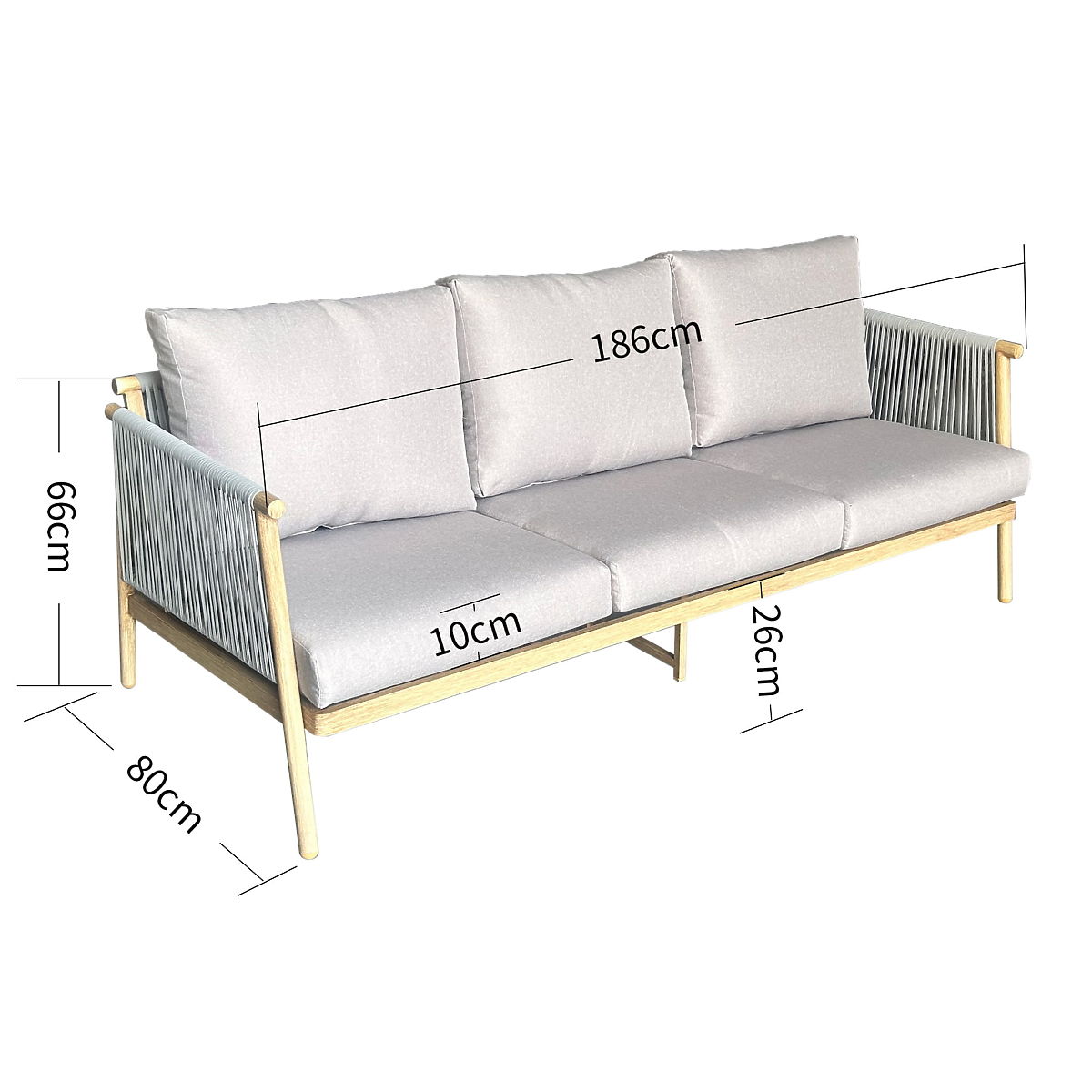 Canapea de grădină din aluminiu BLANDO - mare, cu 3 locuri, 186 cm
