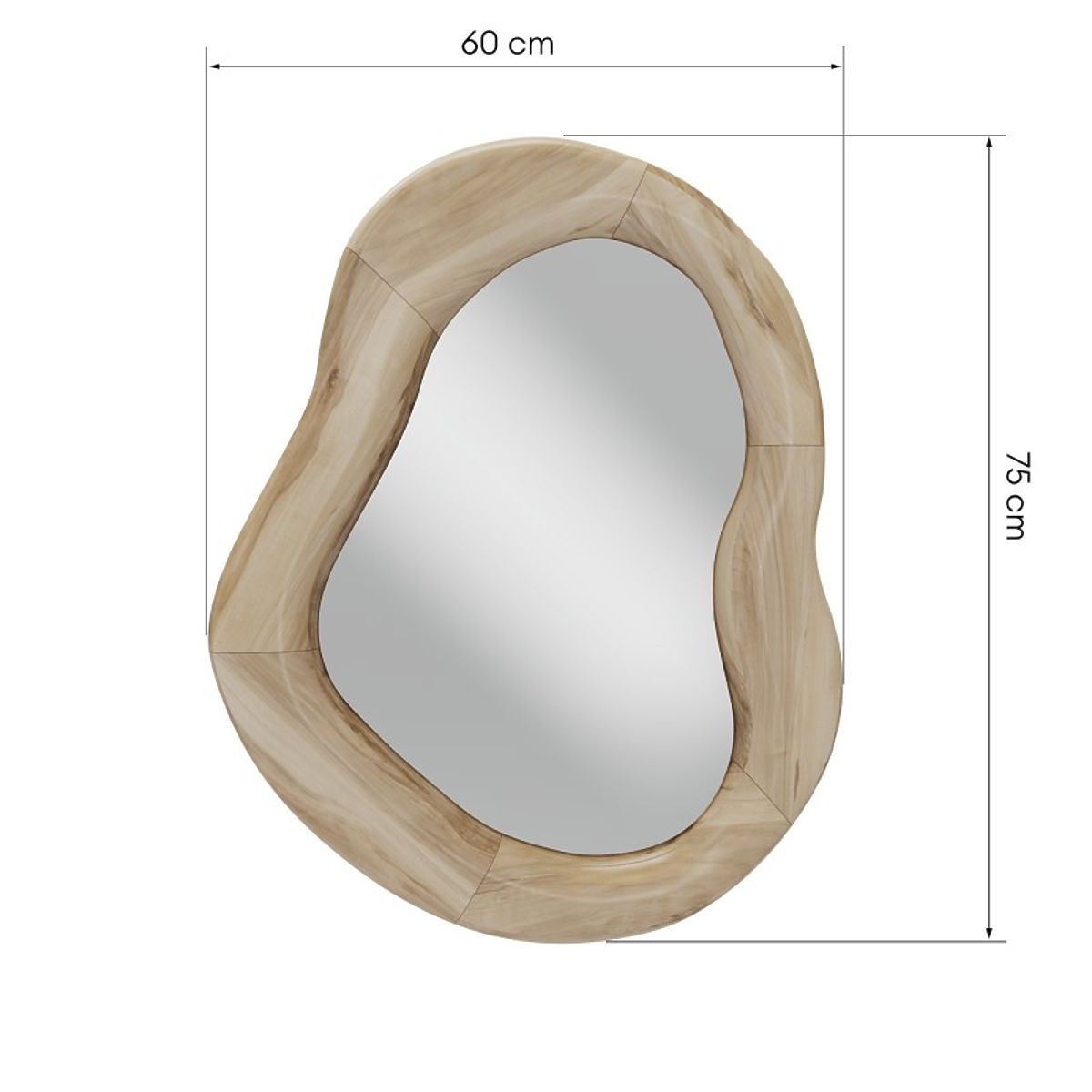 Lukahome.ro » Decorare / Oglinzi / Oglindă suspendată în ramă de lemn Lia 75x60 cm, formă organică, formă neregulată, naturală