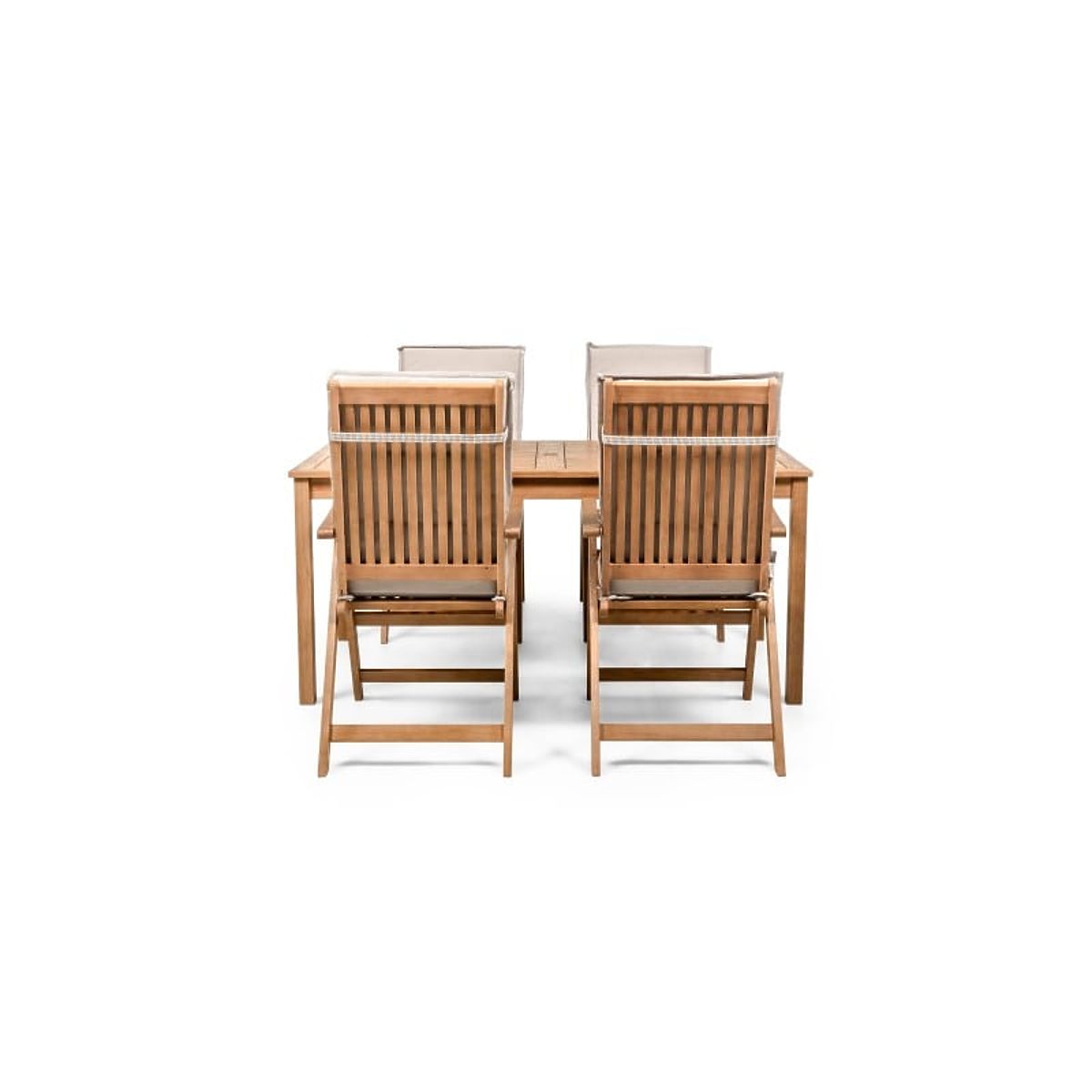 Lukahome.ro » Mobilier de grădină / Seturi de grădină / Set de grădină Familis masă 160 cm + 4 scaune cu spătare reglabile și perne gri deschis