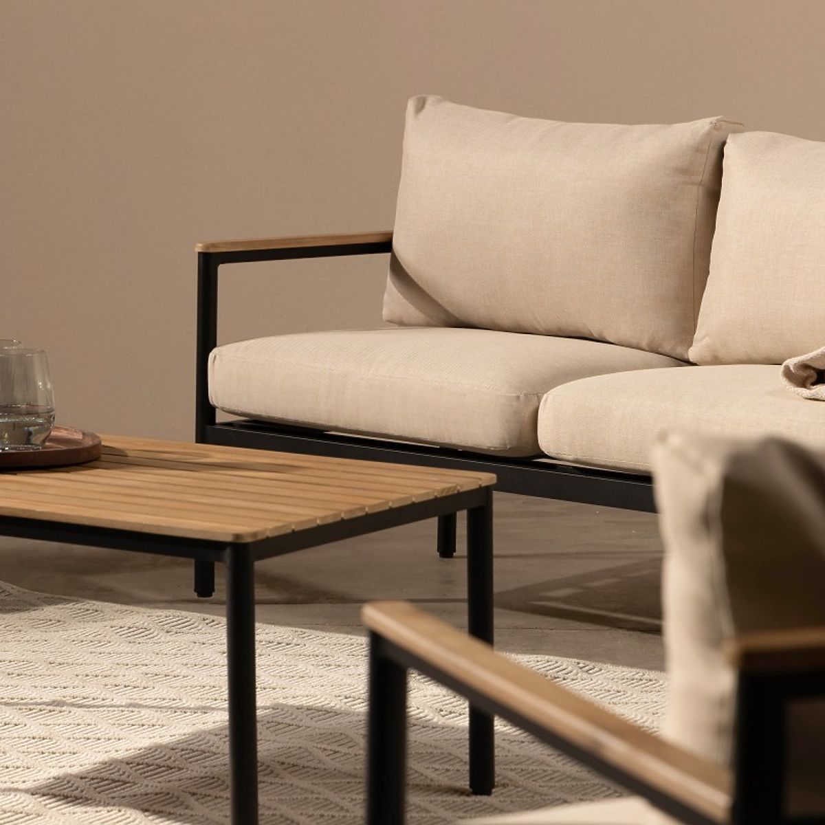 Lukahome.ro » Mobilier de grădină / Seturi de grădină / Set mobilier de grădină Porticello, aluminiu, lemn de salcâm FSC, aspect de tec, bej/negru