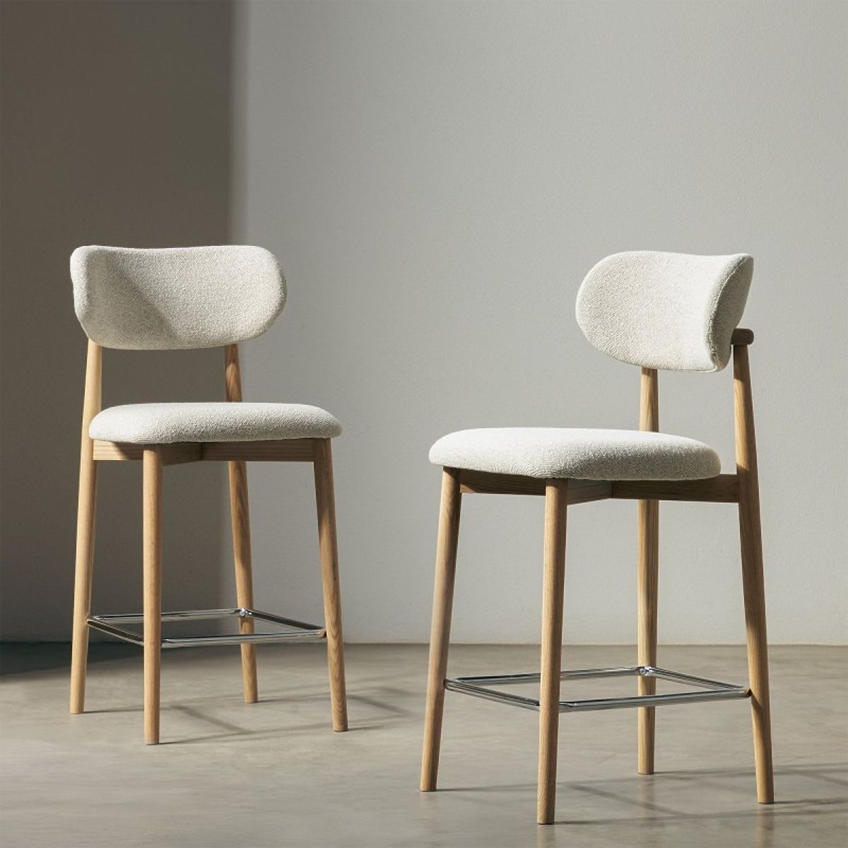 Scaun de bar elegant Amalfi cu tapițerie crem și picioare din stejar. .. mai mult