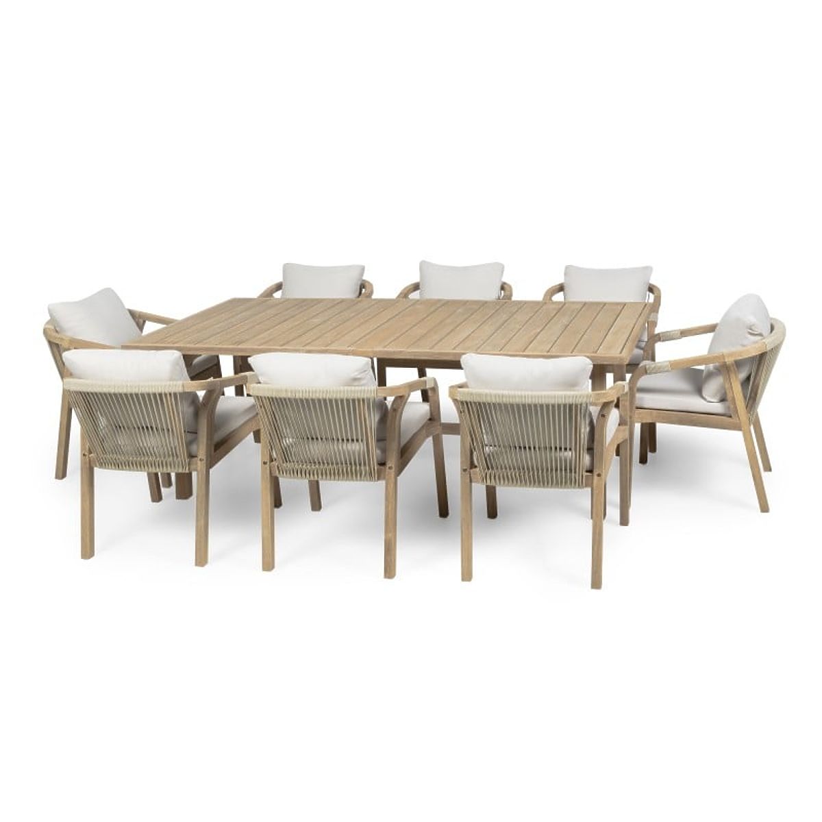 Lukahome.ro » Mobilier de grădină / Seturi de grădină / Set de grădină Castello, masă extensibilă 200-295 cm + 8 scaune cu împletitură, lemn de salcâm FSC