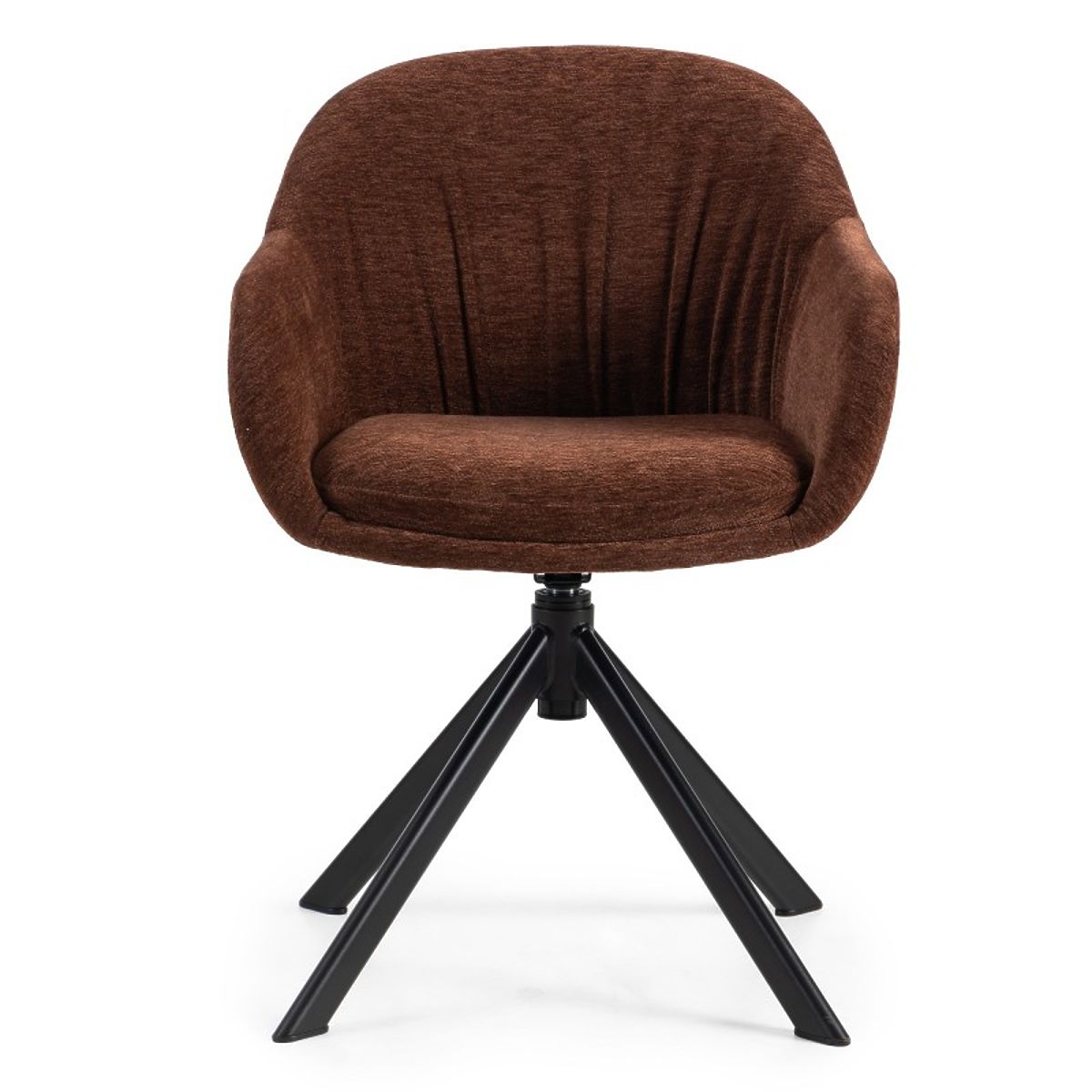 Scaunul rotativ KAIRO este o combinație de eleganță modernă și confort excepțional. Tapițeria moale maro-roșu, pliurile decorative și rotația de 360° îl fac un accesoriu ideal pentru un interior stilat.