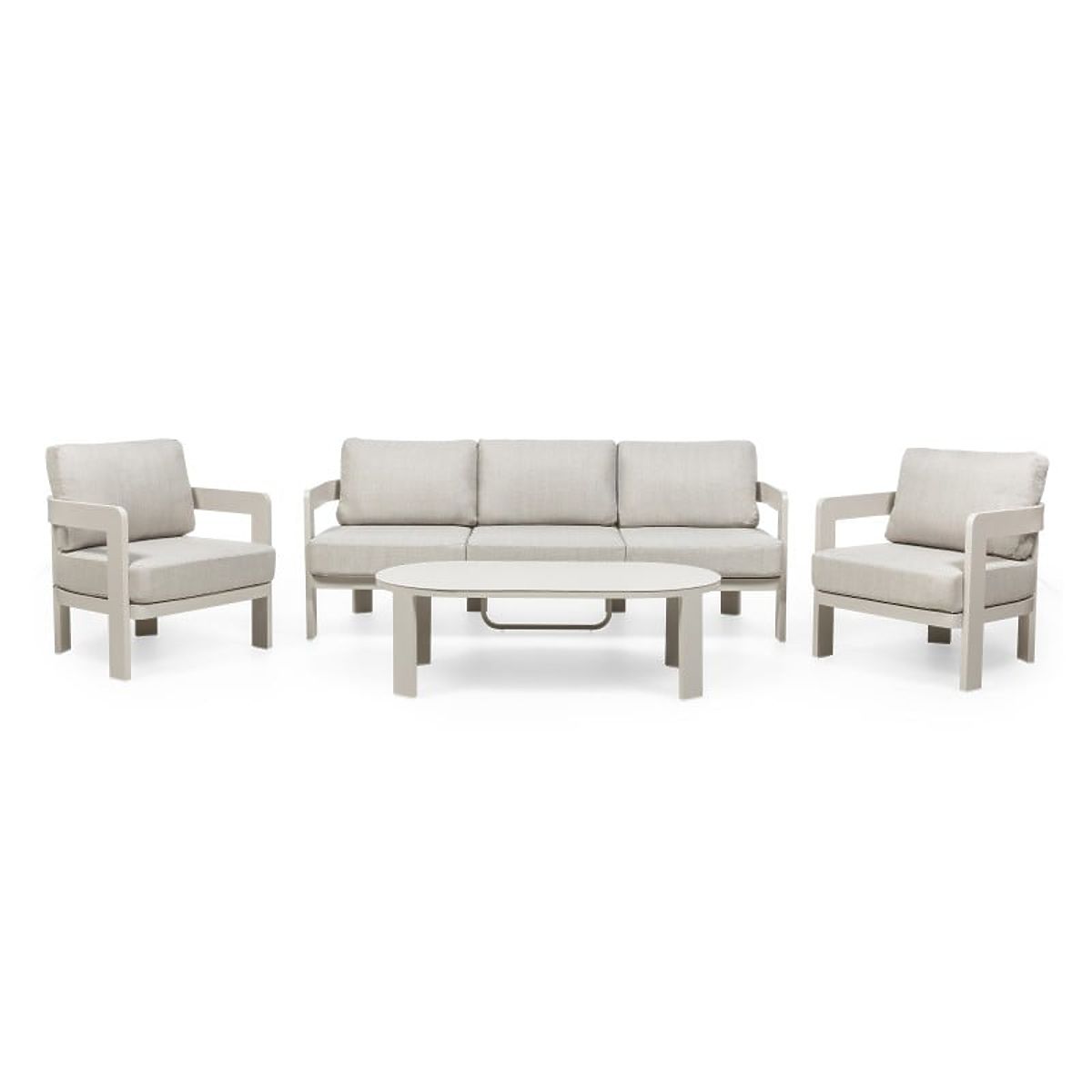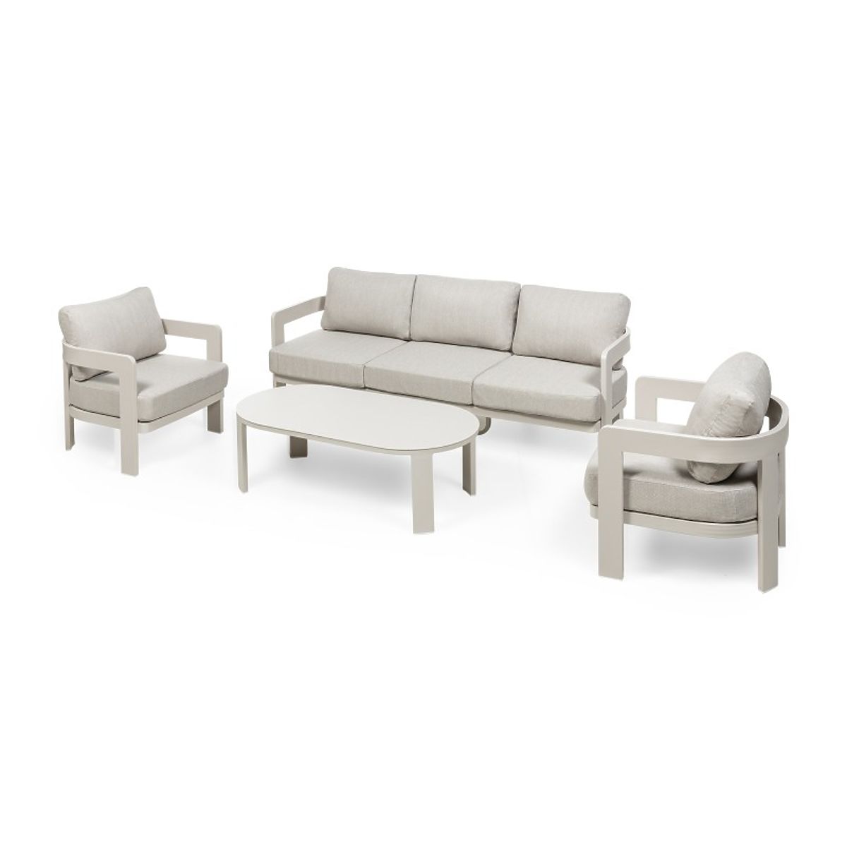 Set mobilier de grădină din aluminiu, bej deschis, cu forme rotunjite. .. mai mult