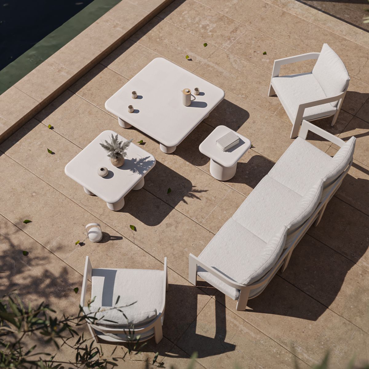Lukahome.ro » Mobilier de grădină / Mese de grădină / Masă de grădină Vibonis 70 cm, pătrată, din ciment, bej deschis