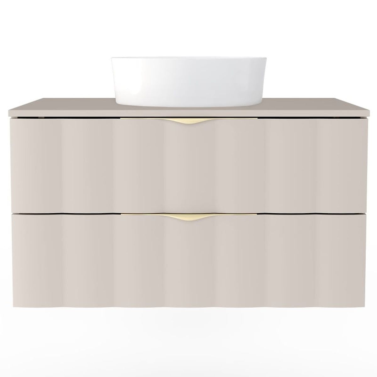 Lukahome.ro » Baie și toaletă / Dulapuri de baie / Dulap sub chiuvetă Omi 80 cm, panou frontal ondulat, mânere aurii, bej cașmir