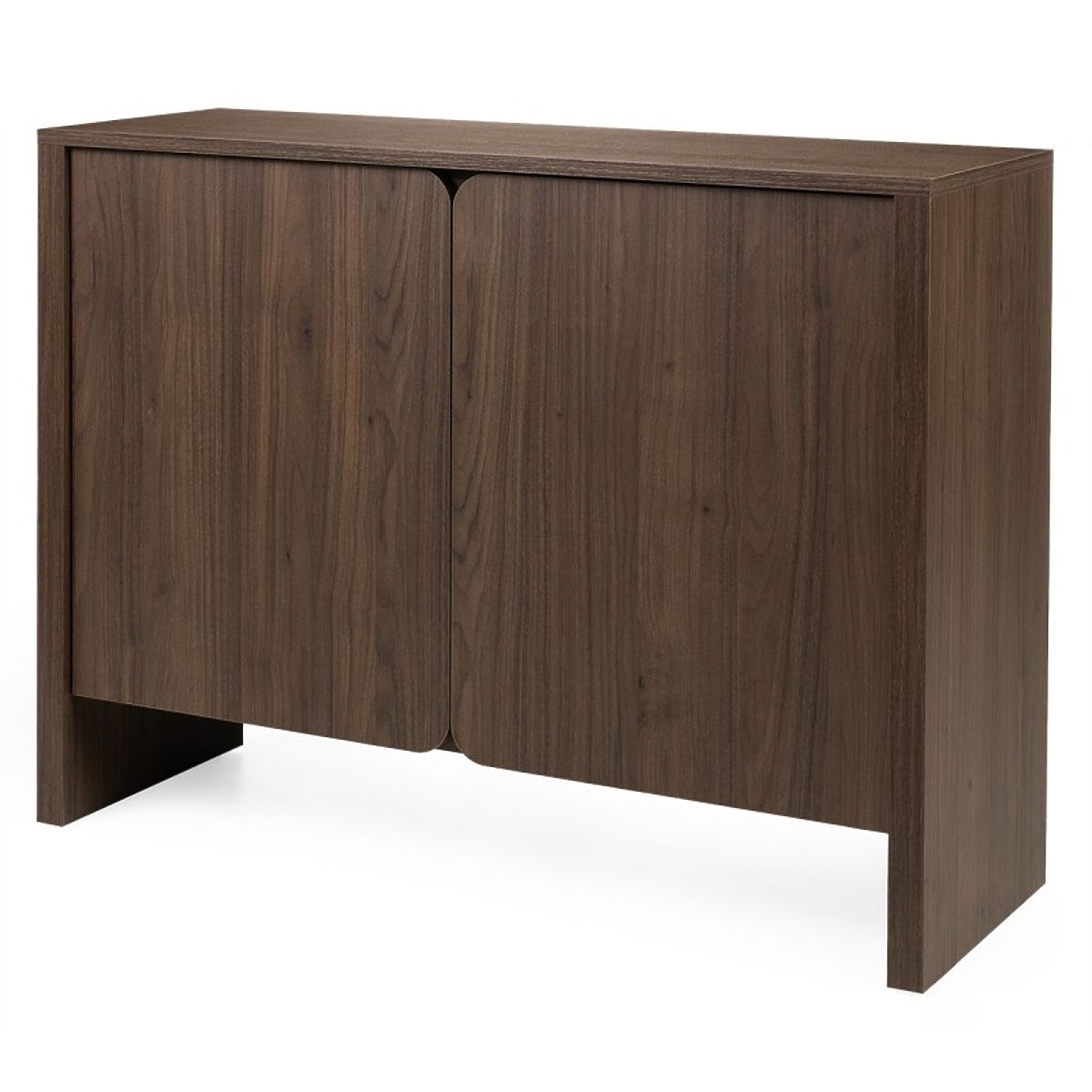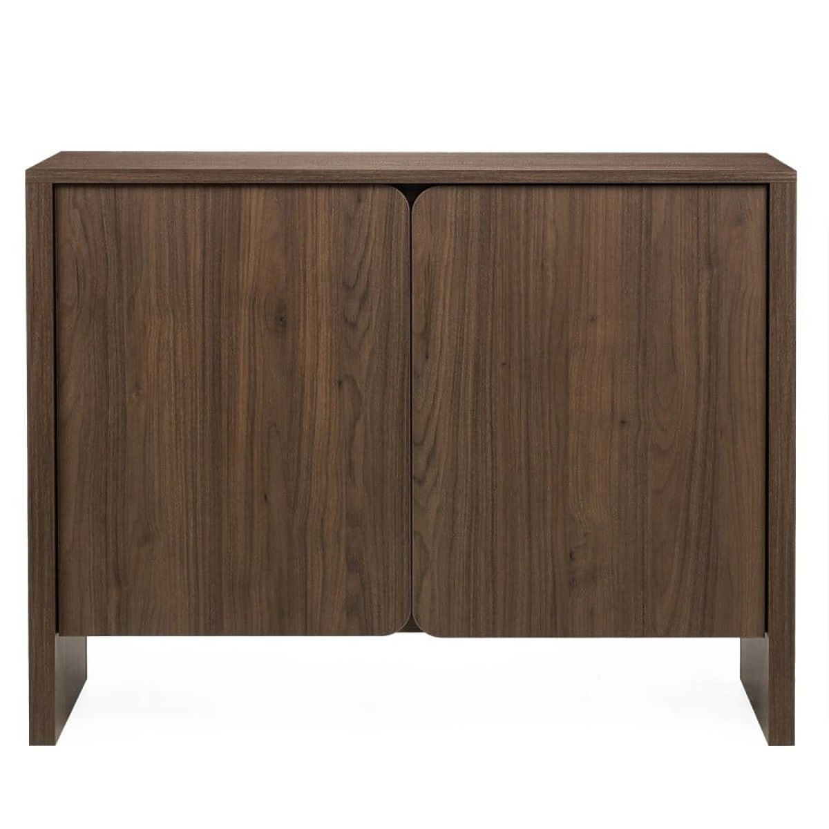 Comoda cu două uși Moku este o combinație de design minimalist și funcționalitate. Rotunjirea excepțională a suprafețelor frontale și culoarea nuc villa îi conferă lejeritate și eleganță, făcând-o potrivită pentru orice interior.