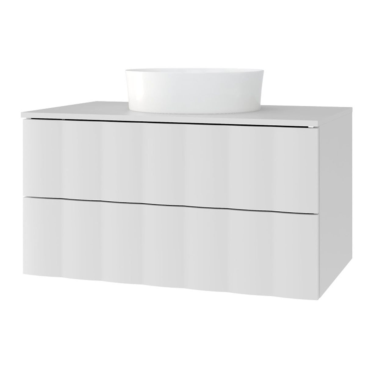 Dulapul Grita este esența eleganței moderne în baia dumneavoastră. Panoul său frontal ondulat adaugă un caracter unic, iar soluțiile practice precum sistemul push to open și cele două sertare cu închidere silențioasă asigură confortul în utilizare.