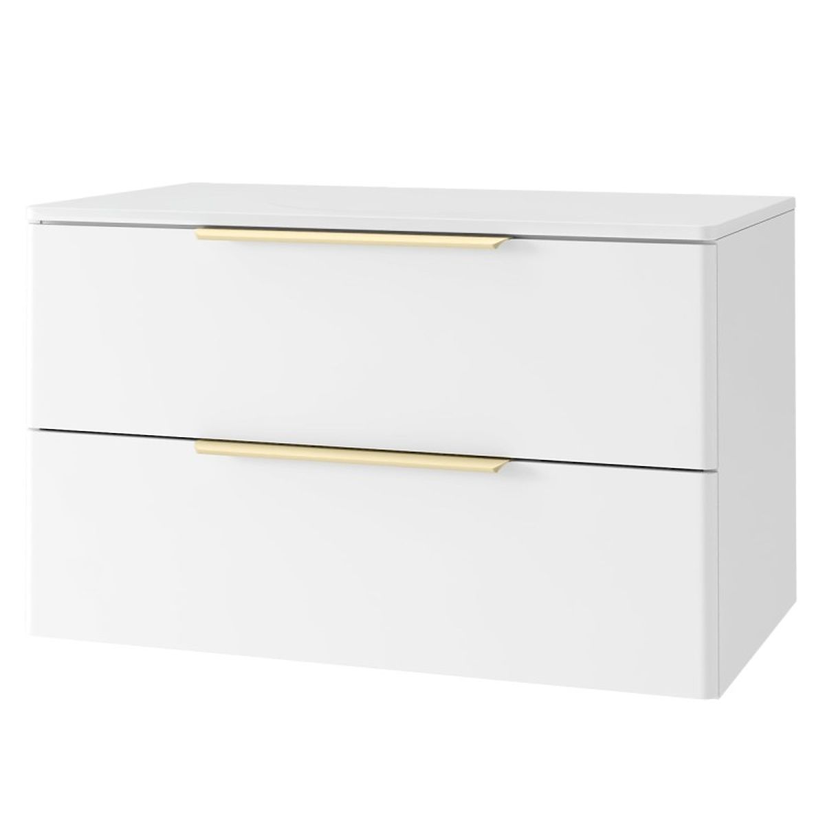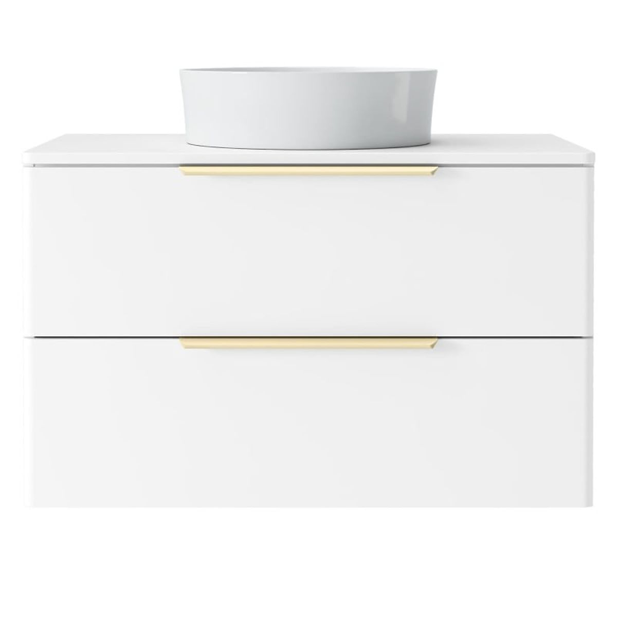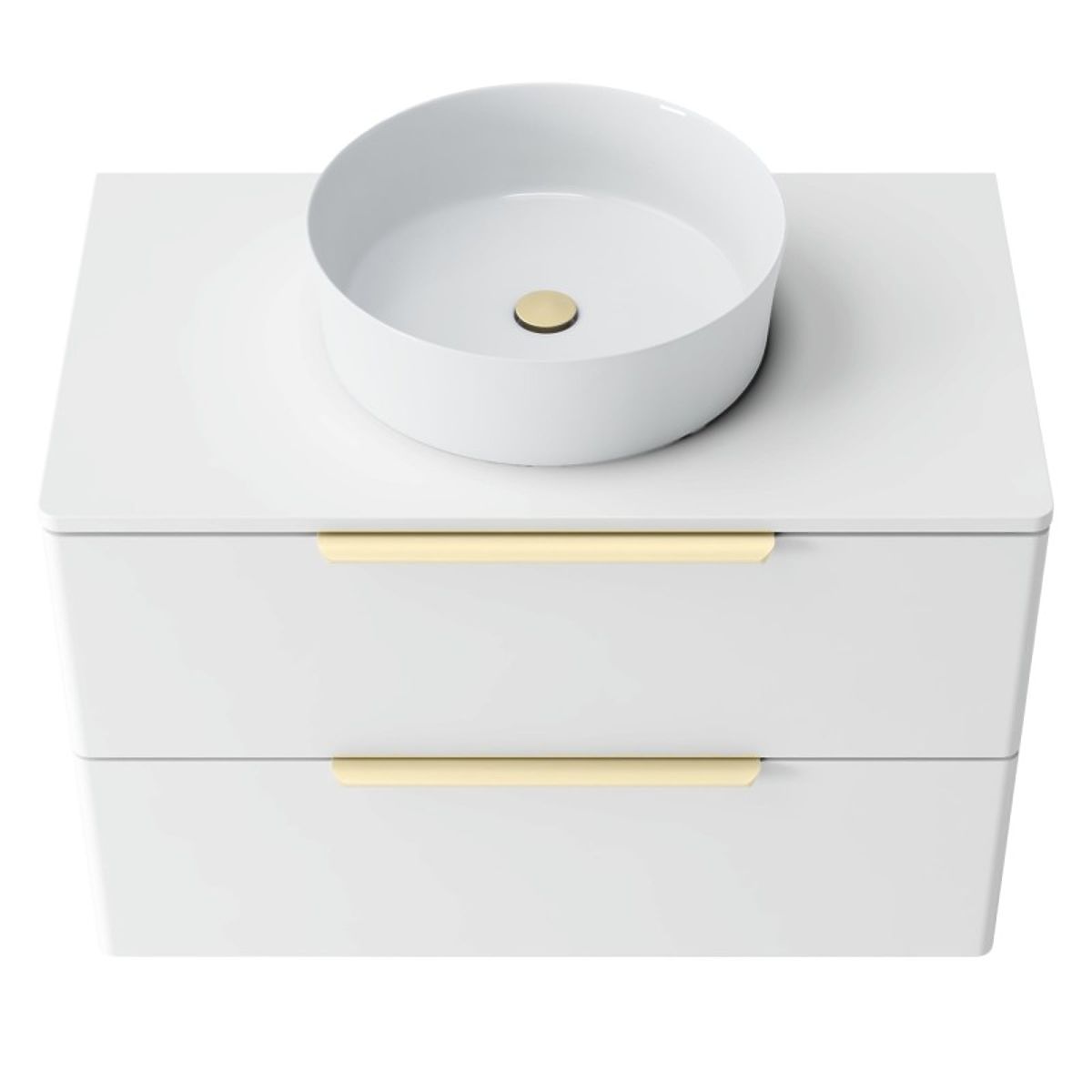 Dulap alb Tidea sub chiuvetă cu mânere aurii și sertare silențioase. .. mai mult