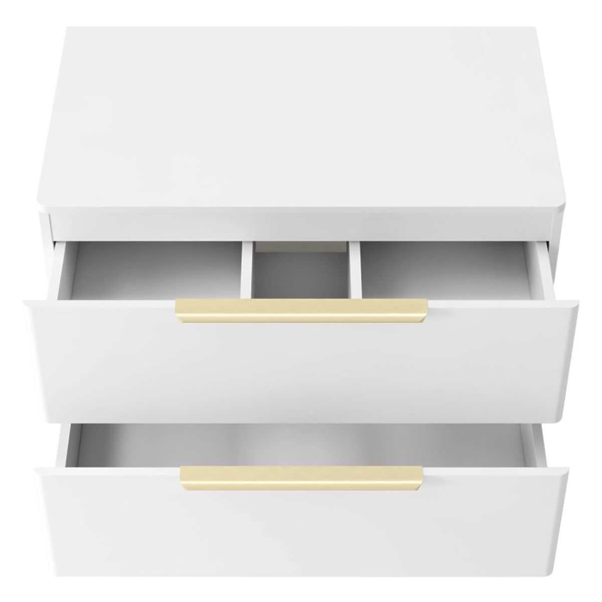 Dulapul Tidea este o îmbinare delicată între simplitatea modernă și detaliile stilate. Fețele albe cu un accent auriu subtil al mânerelor creează un mobilier care completează frumos orice baie, iar sertarele funcționale cu închidere silențioasă asigură confort și ordine în utilizarea zilnică.
