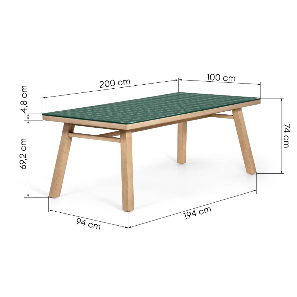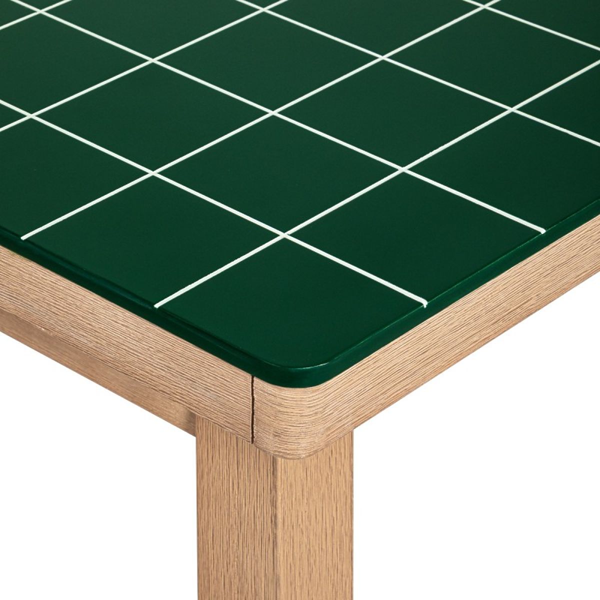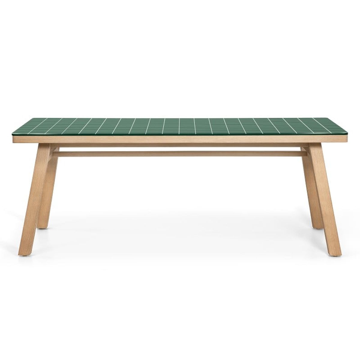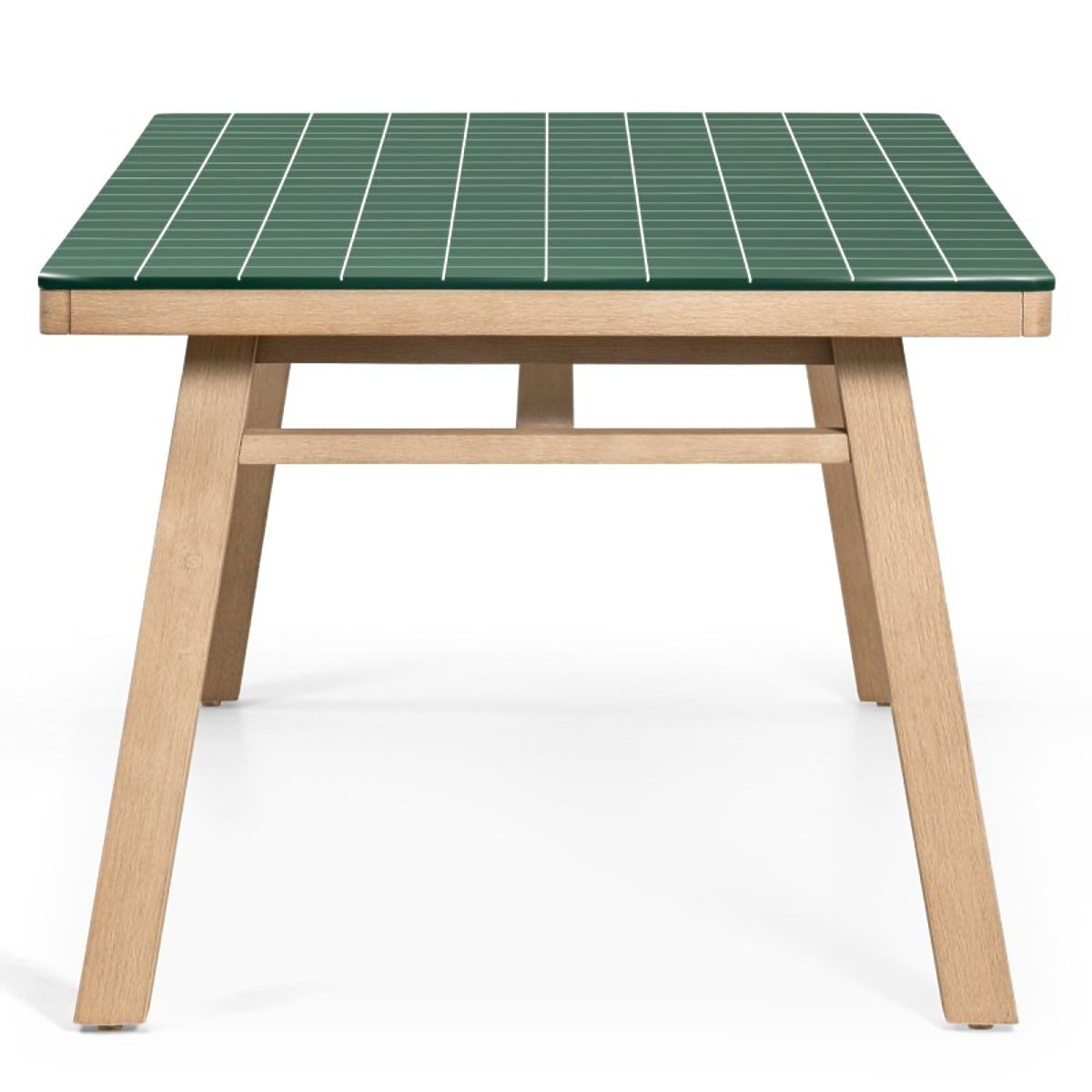Wabi este o masă care combină un model geometric brut cu căldura lemnului natural. Blatul verde intens și grila albă precisă creează un aspect arhitectural unic, care va înviora orice spațiu de grădină.