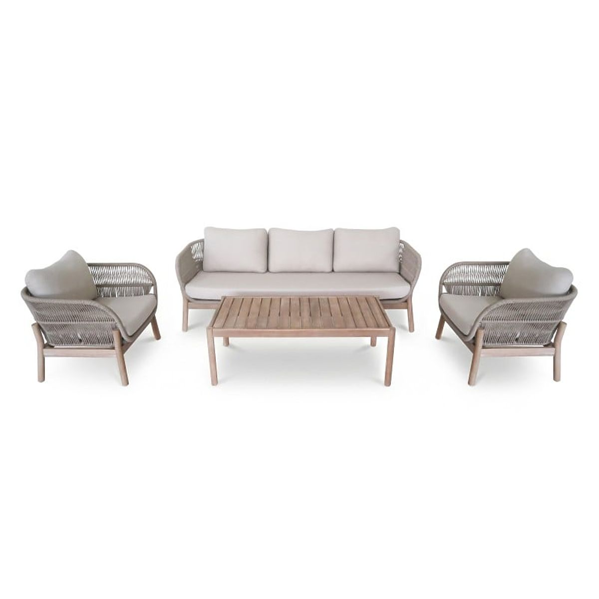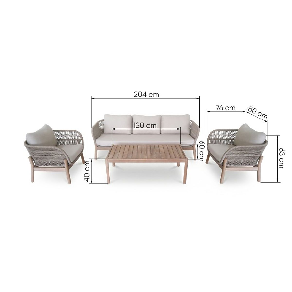 Aduceți confortul livingului în grădină cu setul Fiorentino. O canapea cu trei locuri, două fotolii și o masă dreptunghiulară formează un ansamblu unitar, ideal pentru după-amiezi liniștite în aer liber. Elementele împletite din frânghie rezistentă și liniile rotunjite reprezintă un accent interesant, în timp ce lemnul de acacia, care stă la baza setului, nu doar că adaugă un farmec natural, dar asigură și rezistență și durabilitate pentru multe sezoane.