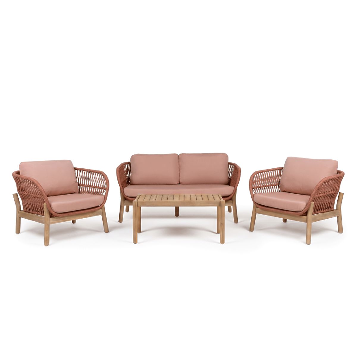 Lukahome.ro » Mobilier de grădină / Seturi de grădină / Set mobilier de grădină Fiorentino aspect de tec, împletitură, lemn de acacia deschis FSC, teracotă,