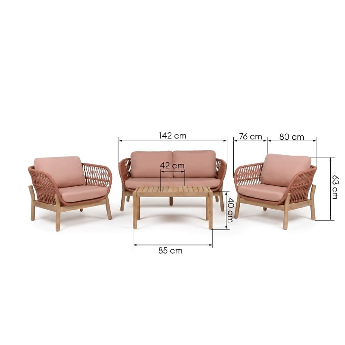 Aduceți confortul din living în grădină cu setul Fiorentino. O canapea cu două locuri, două fotolii și o masă dreptunghiulară formează un ansamblu armonios, ideal pentru după-amieze liniștite în aer liber. Elementele împletite din frânghie rezistentă și liniile rotunjite reprezintă un accent interesant, în timp ce lemnul de acacia, care constituie baza setului, nu doar că adaugă un farmec natural, dar garantează și rezistență și durabilitate pentru multe sezoane.