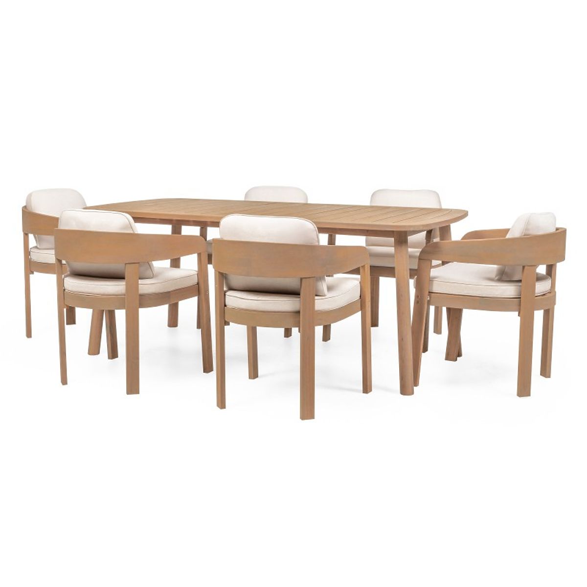 Lukahome.ro » Mobilier de grădină / Seturi de grădină / Set de grădină Satori, masă 183 cm + 6 scaune, lemn de salcâm FSC, aspect de tec, bej, rotunjit