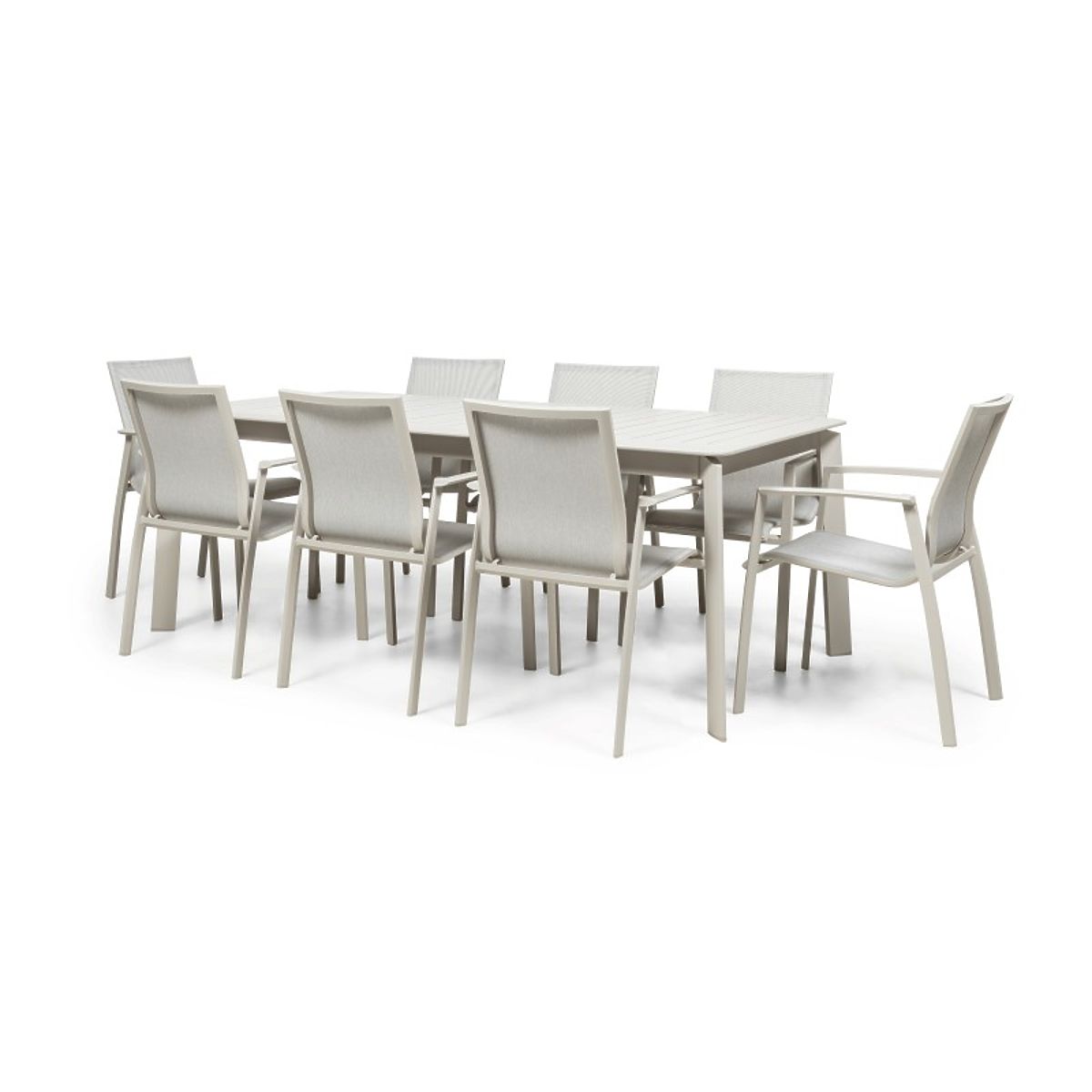 Lukahome.ro » Mobilier de grădină / Seturi de grădină / Set de grădină Canelli, masă extensibilă 205-286 cm + 8 scaune, aluminiu, bej deschis