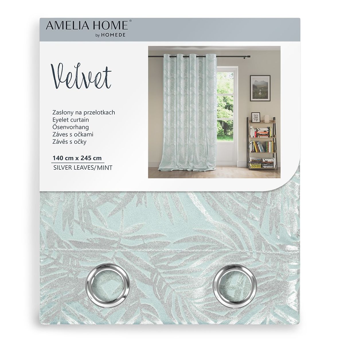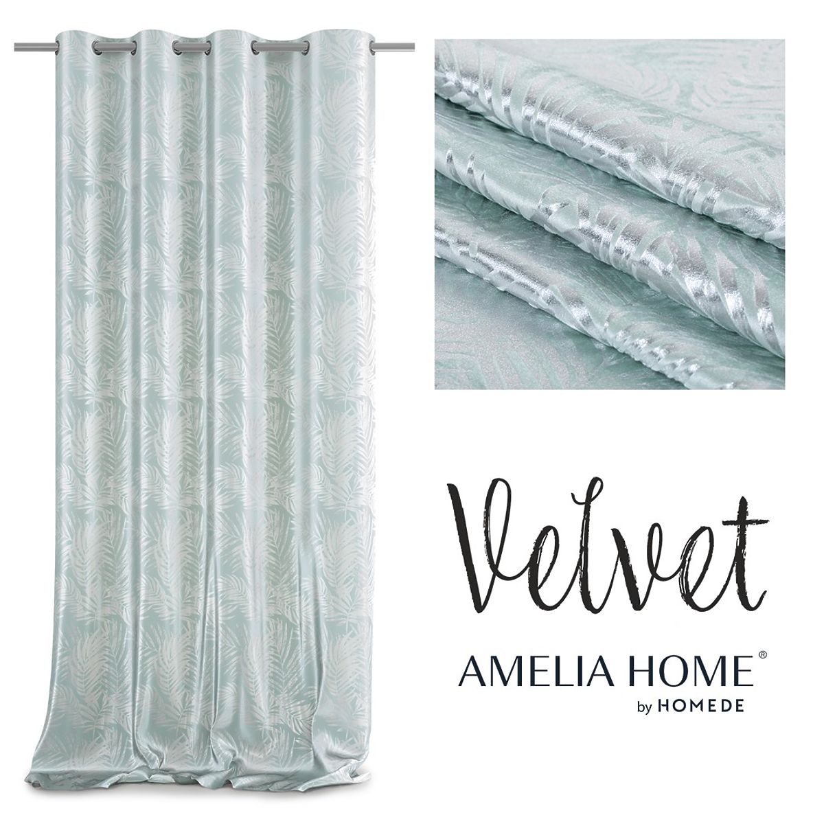 Lukahome.ro » Perdele și perdele / Perdele / Draperie SILVERLEAVES culoare mentă stil imprimat glamour inele argintii catifea 140x245 AmeliaHom