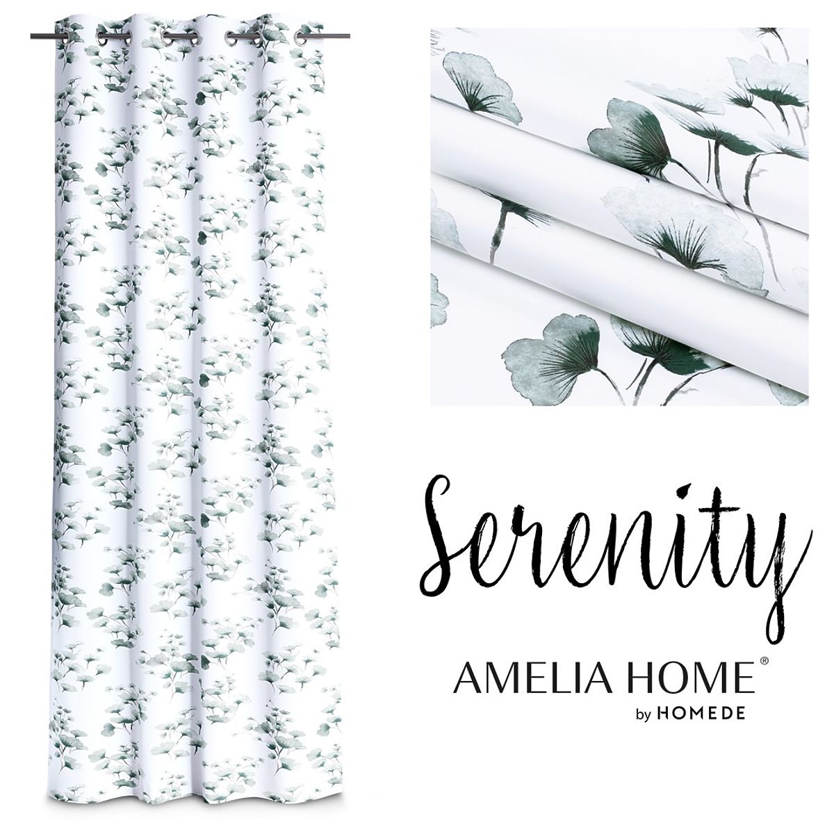 Lukahome.ro » Perdele și perdele / Perdele / Draperie SERENITY culoare albă cu motiv vegetal imprimat stil clasic inele metalice argintii