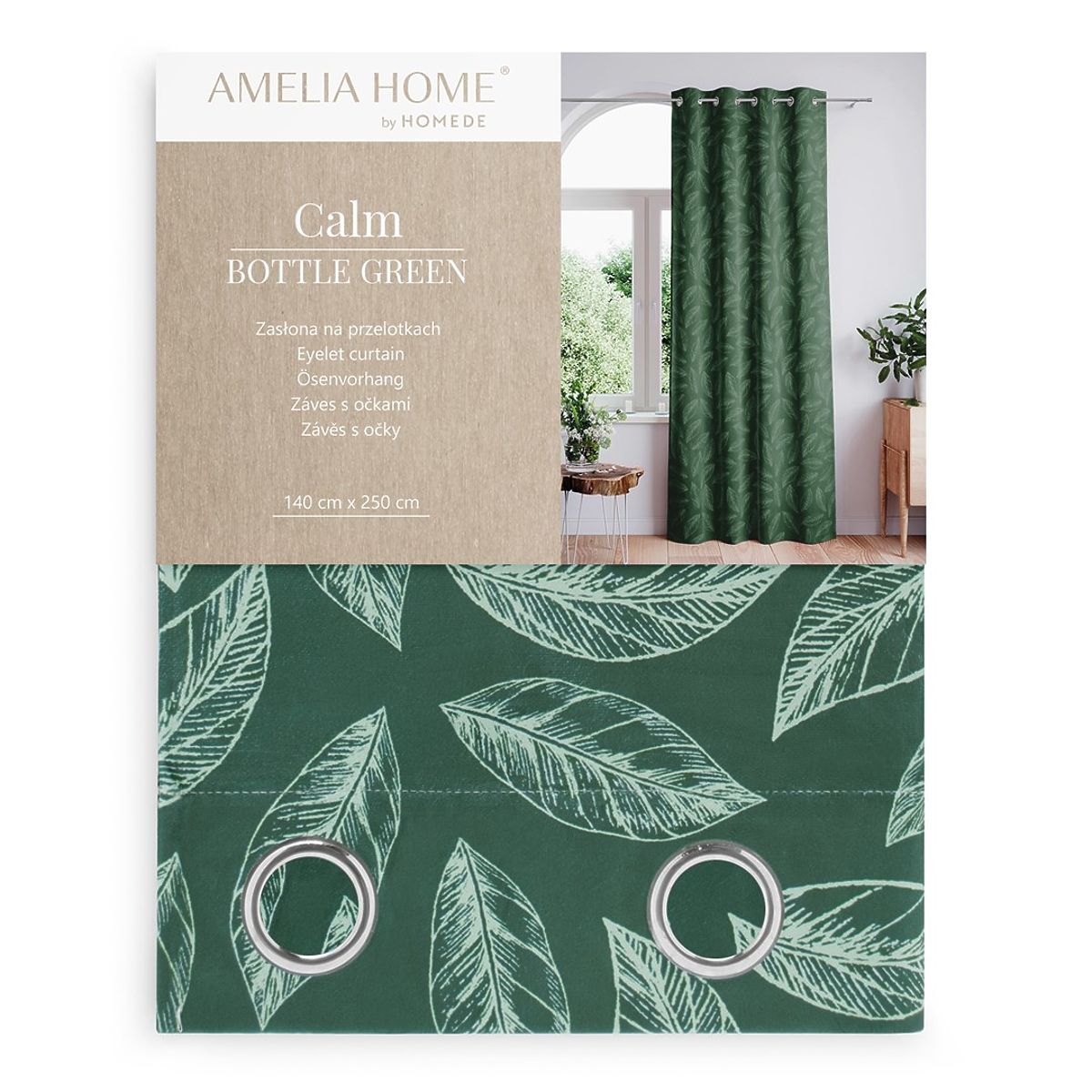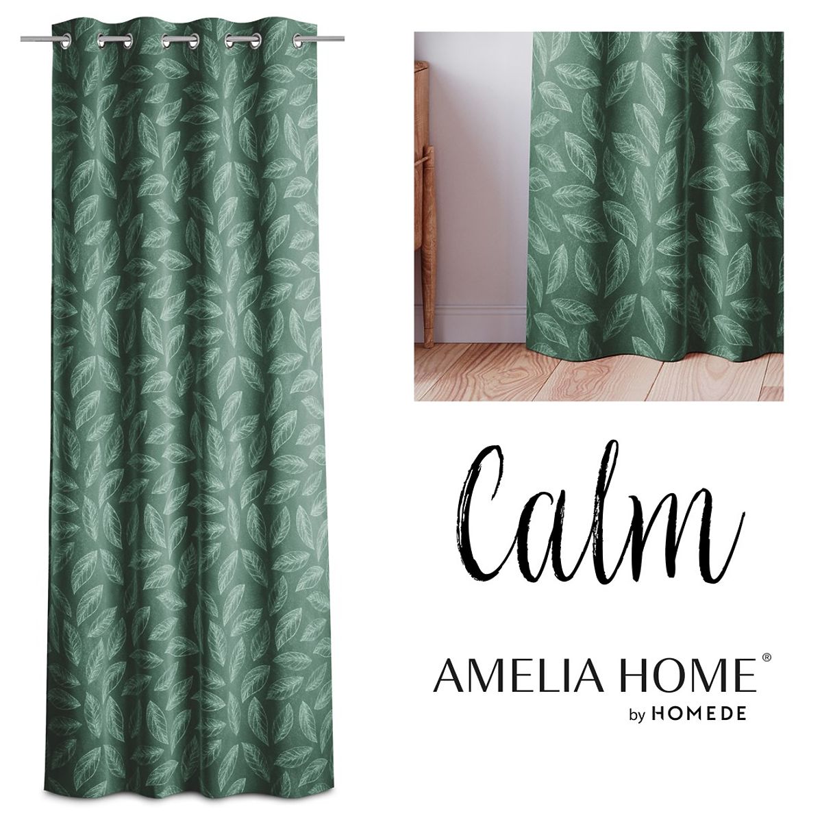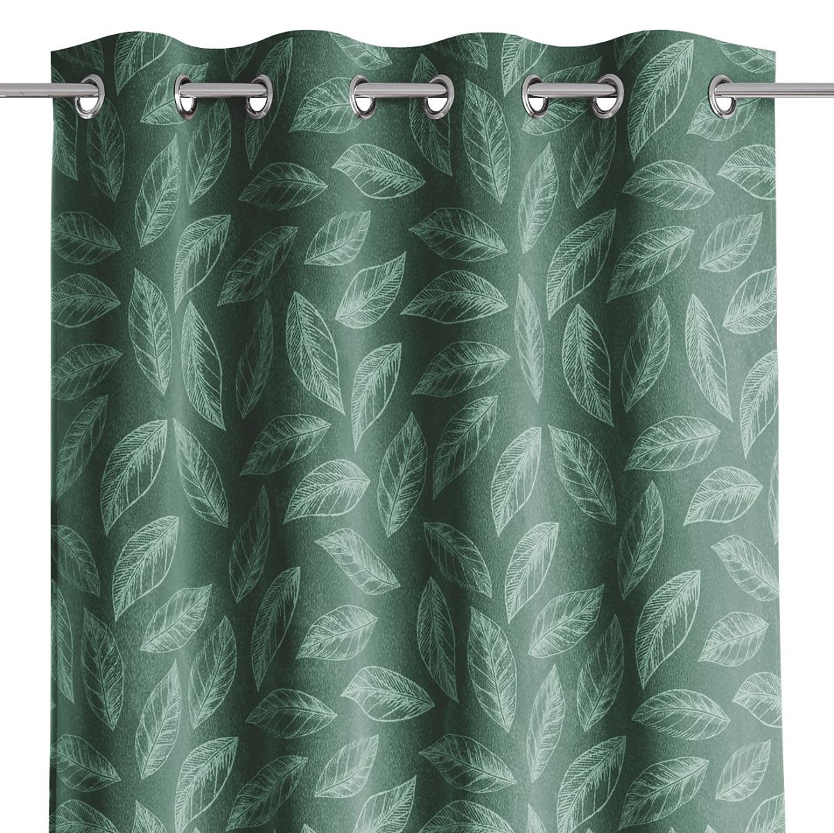 Lukahome.ro » Perdele și perdele / Perdele / Draperie CALM culoare verde sticlă cu motiv vegetal imprimat stil clasic cu inele metalice argintii