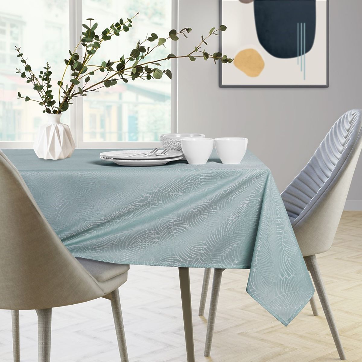 Lukahome.ro » Decorare / Decorațiuni și accesorii / Față de masă GAIA culoare mentă cu motiv vegetal embosat 140x180 ameliahome