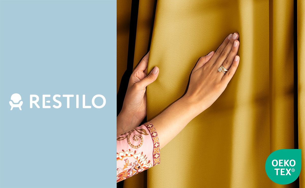 Lukahome.ro » Perdele și perdele / Perdele / Draperie RESTILO BLACKOUT culoare muștar stil clasic inele argintii material