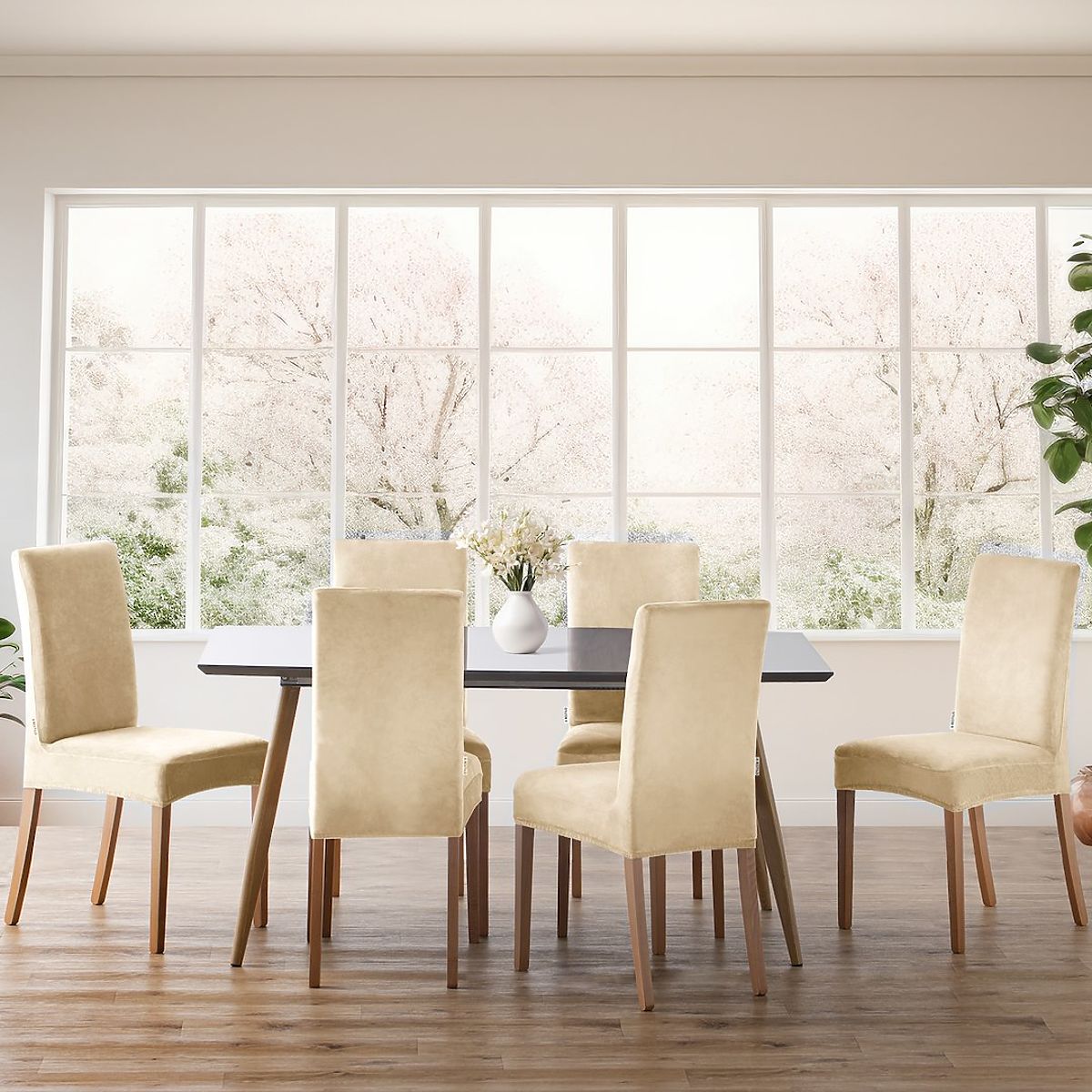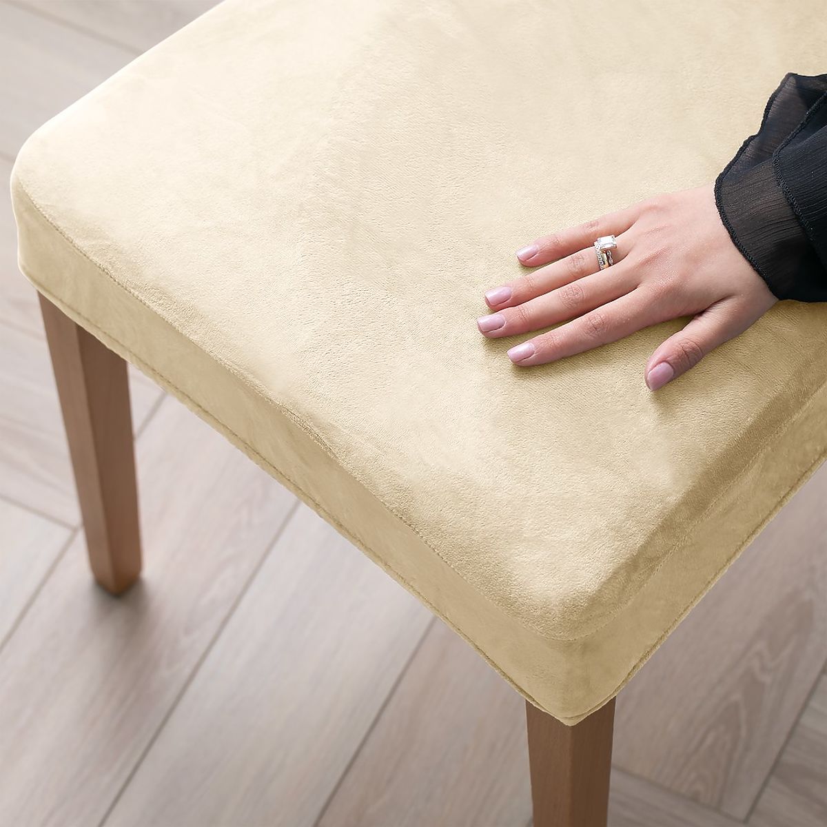 Husă pentru canapea din velur bej deschis, stil clasic, fără închidere. .. mai mult