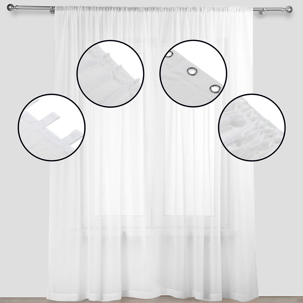 Perdea albă clasică din voal creponat, 140x270 cm. .. mai mult