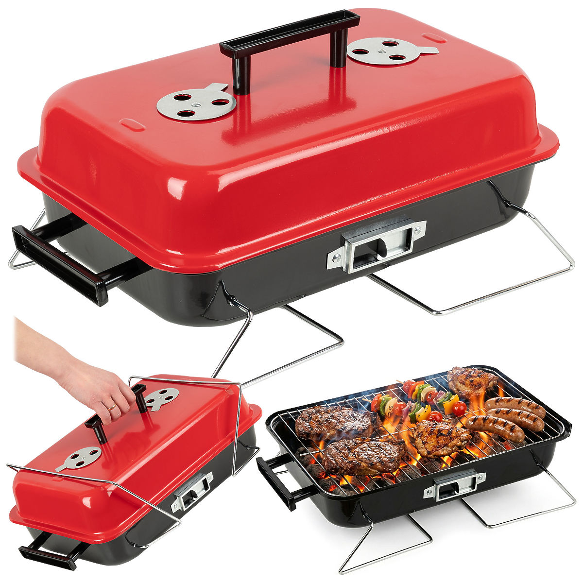 Grătar portabil pliabil pe cărbune CAMPAL cu capac