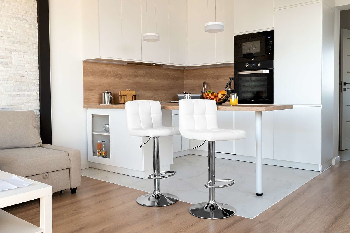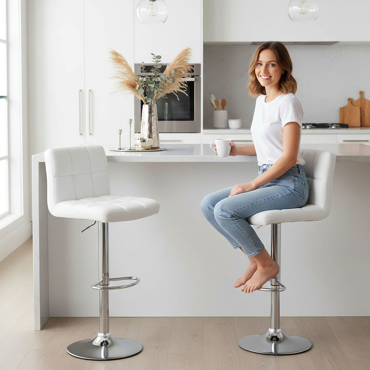 Scaunul de bar rotativ Arako este o soluție excelentă pentru cei care caută eleganță, funcționalitate și confort într-un singur produs. Datorită designului modern și execuției de calitate, se potrivește perfect în spațiile de acasă. Scaunul confortabil din piele ecologică și suportul pentru picioare asigură confort chiar și în timpul utilizării îndelungate. Construcția rotativă și posibilitatea de ajustare a înălțimii permit ca scaunul să se adapteze fiecărui utilizator și diferitelor aranjamente interioare.