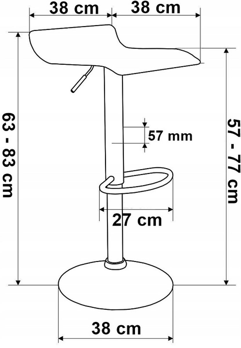 Înălțimea minimă a scaunului: 57 cm