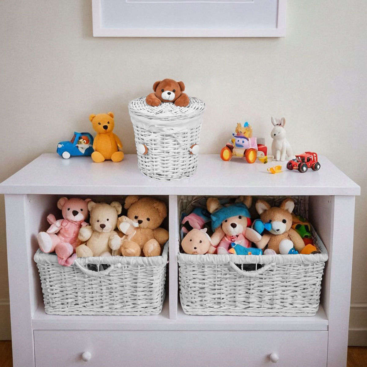 Coșul de răchită este ideal ca coș pentru jucării sau mărunțișuri în regatul copilului dumneavoastră. Este un accesoriu foarte frumos și estetic pentru orice cameră.